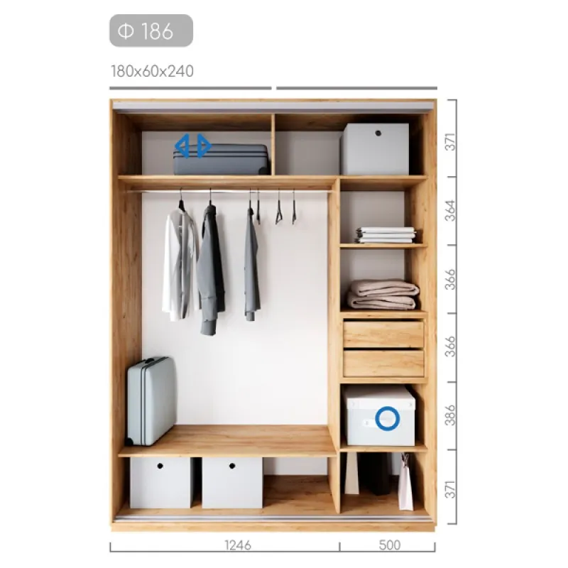 Полиці, штанги, висувні шухляди, дзеркало |