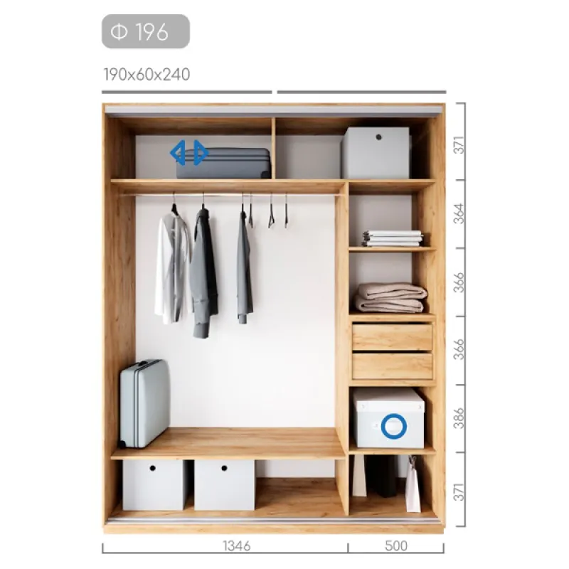 Полиці, штанги, висувні шухляди, дзеркало |