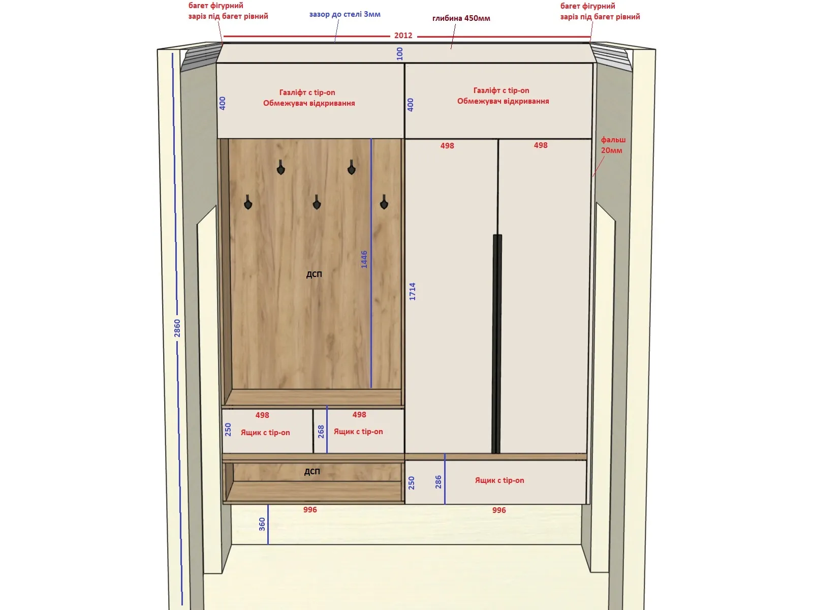 Висувні ящики, Штанги, Полиці, Дзеркало |