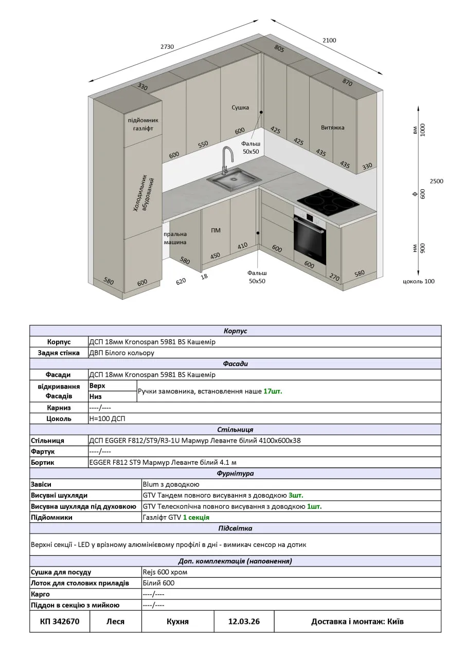 Меблі Варіант Кухні №398 12.03.2026