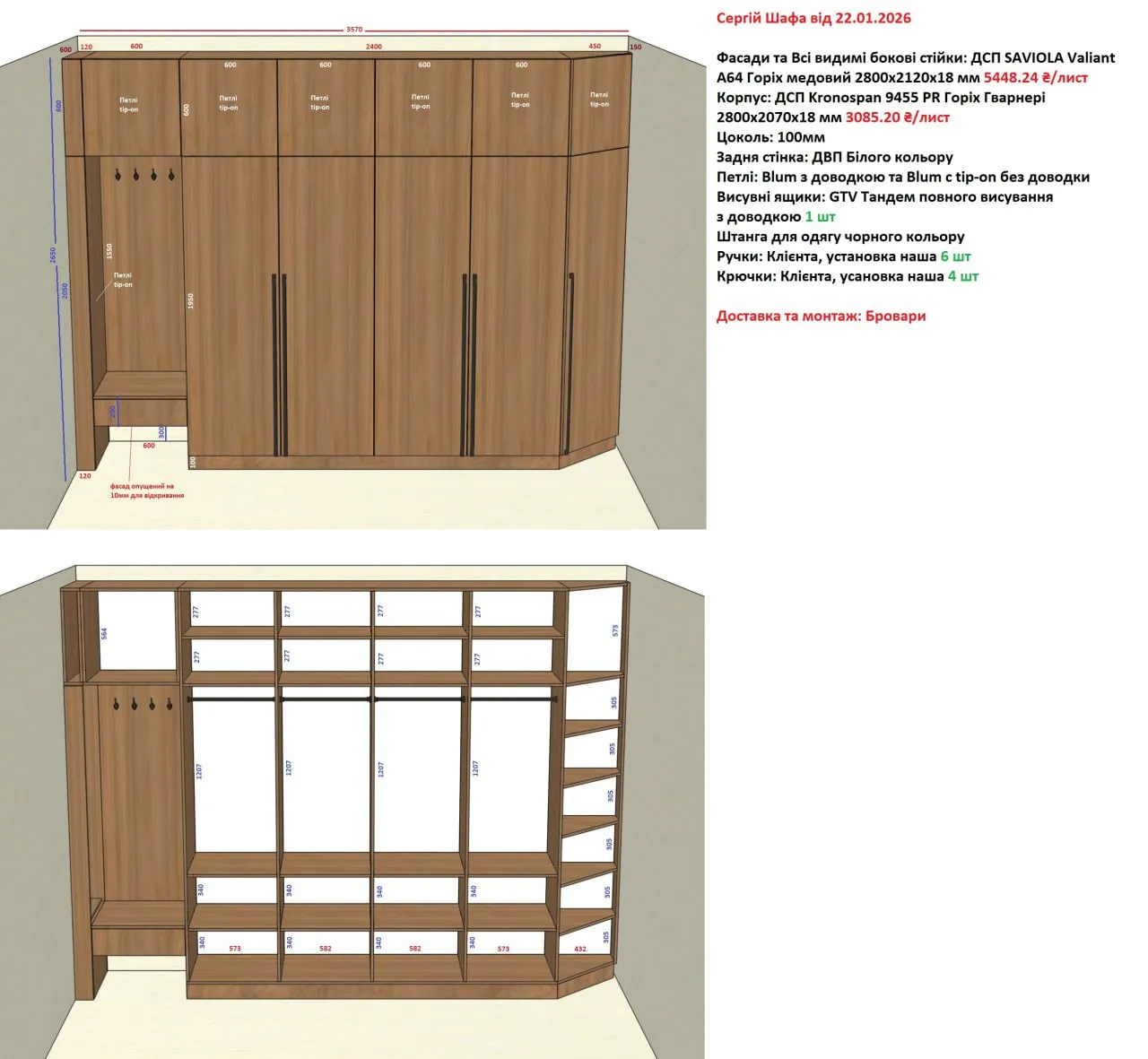 Залишилась задоволена якістю виробів та сервісом. Менеджер Андрій швидко та конкретно ознайомив з можливостями виготовлення та монтажу,що дало змогу швидко визначитись з замовленням.