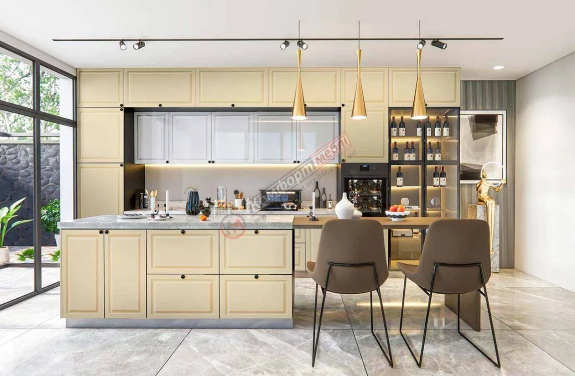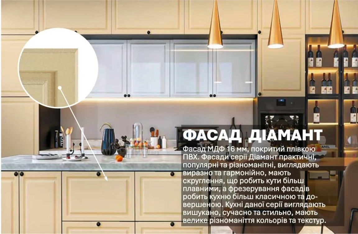 Модульна кухня Діамант 4.4м з островом Білий, Крем
