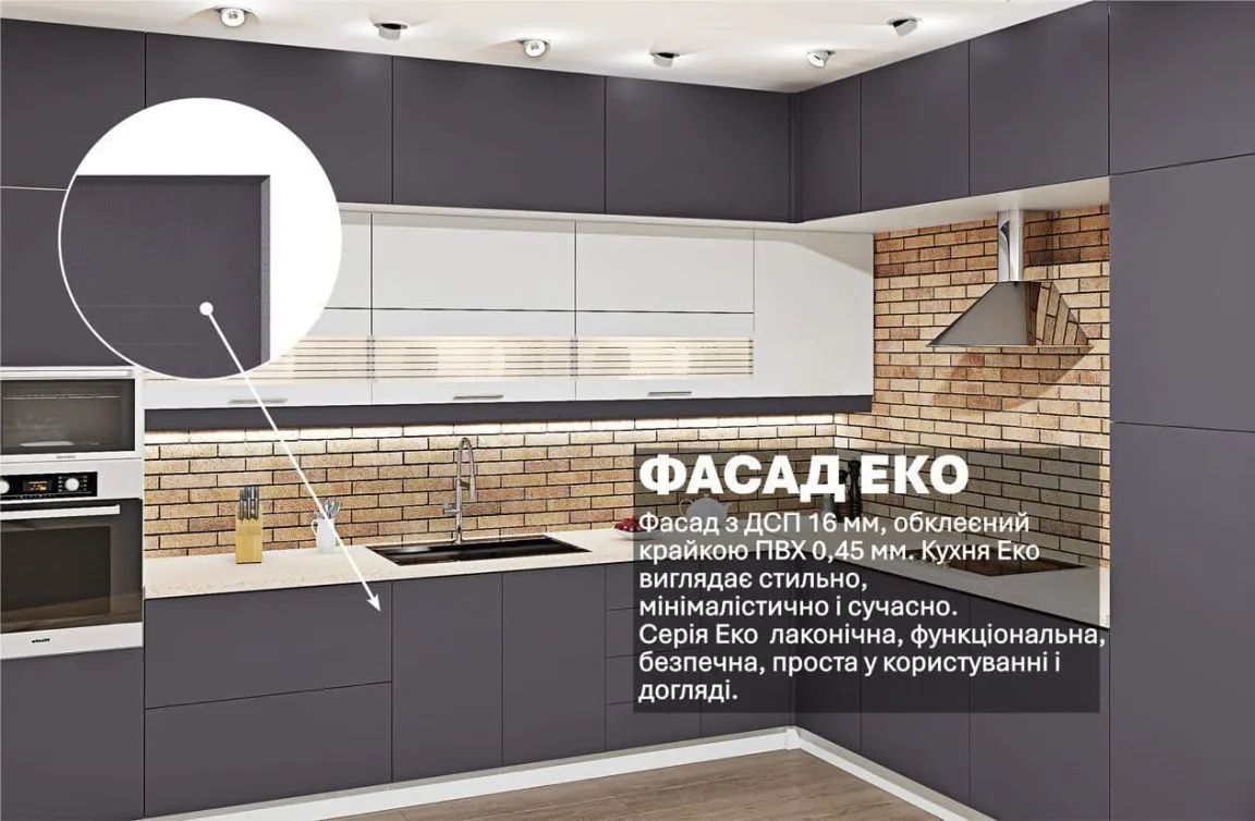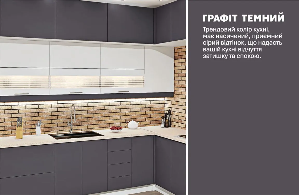Модульна кухня Еко 3600 х 2800 мм кутова Білий, Графіт темний