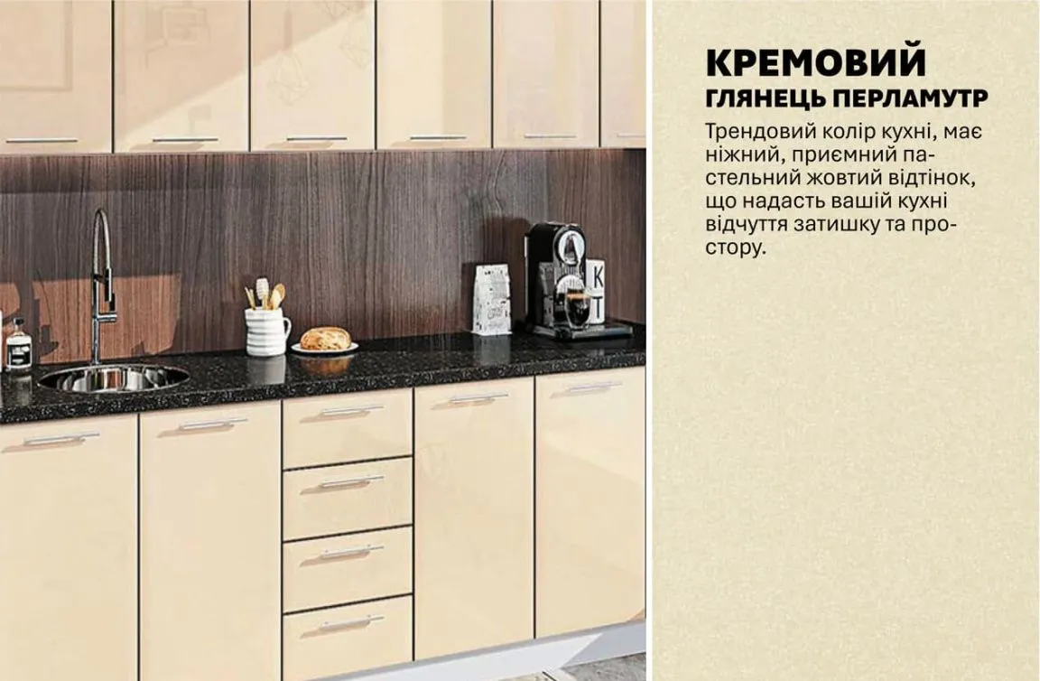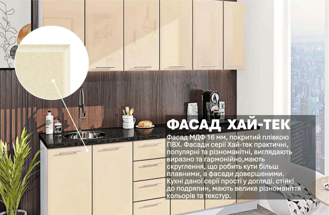 Модульна кухня Хай-тек 2,3 метра Крем