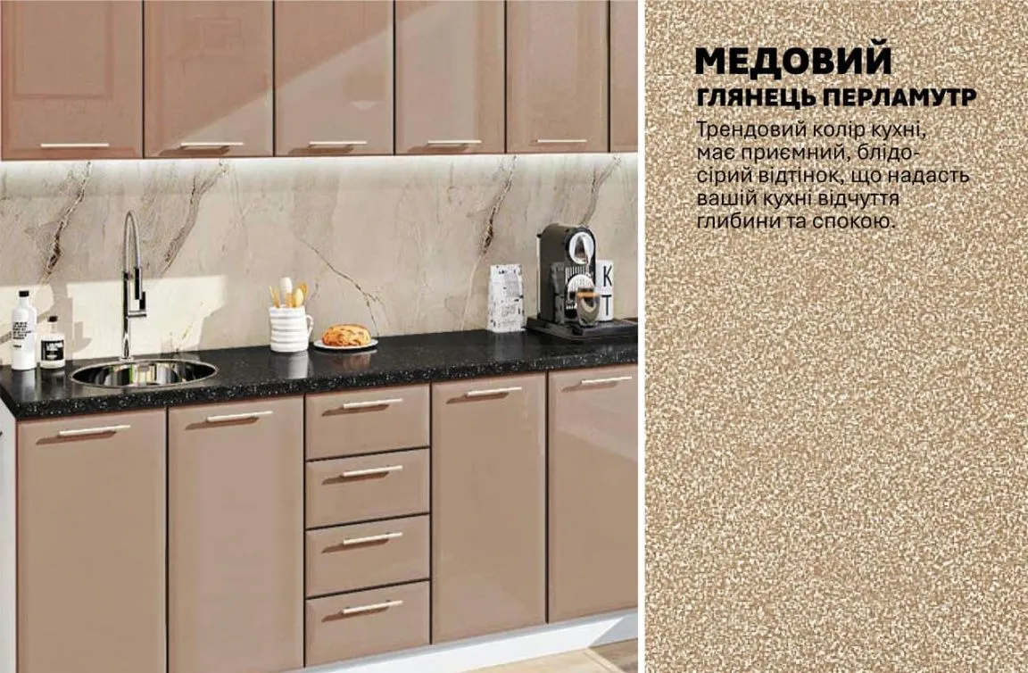 Модульна кухня Хай-тек 2,4 метра Медовий
