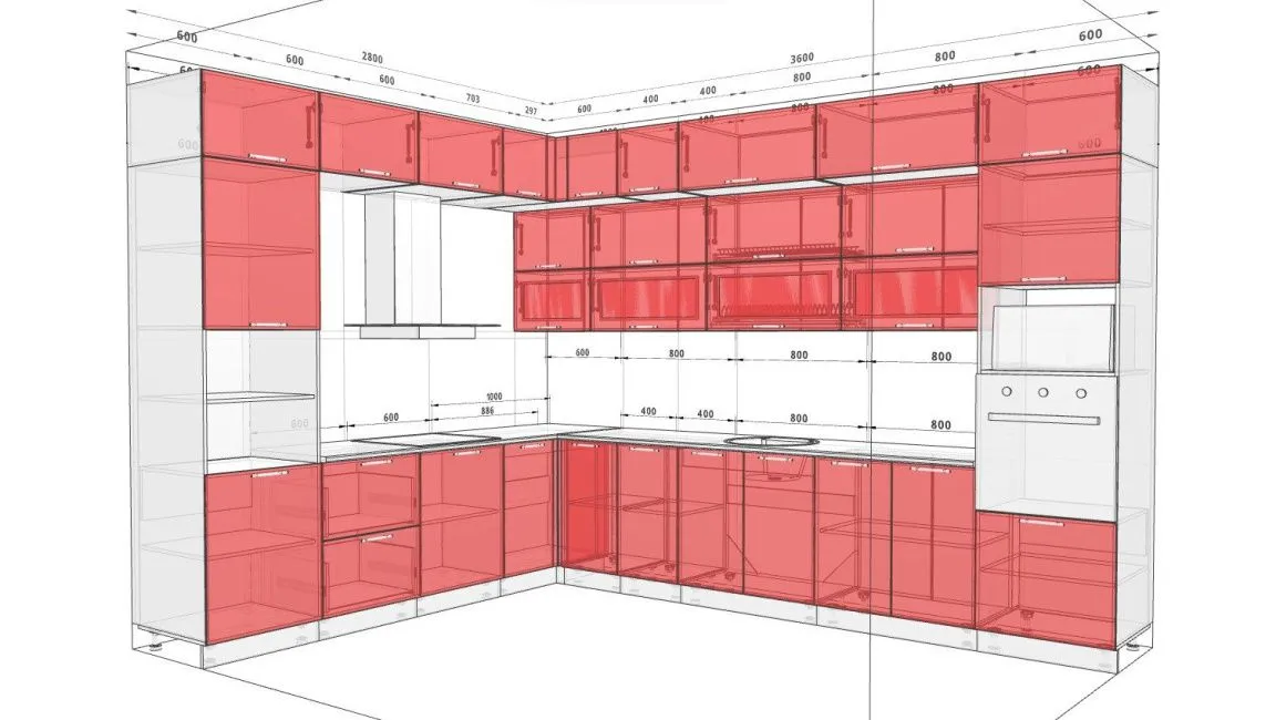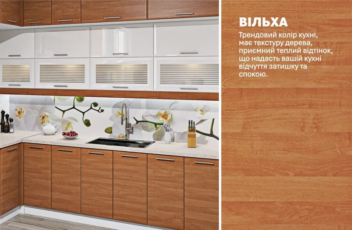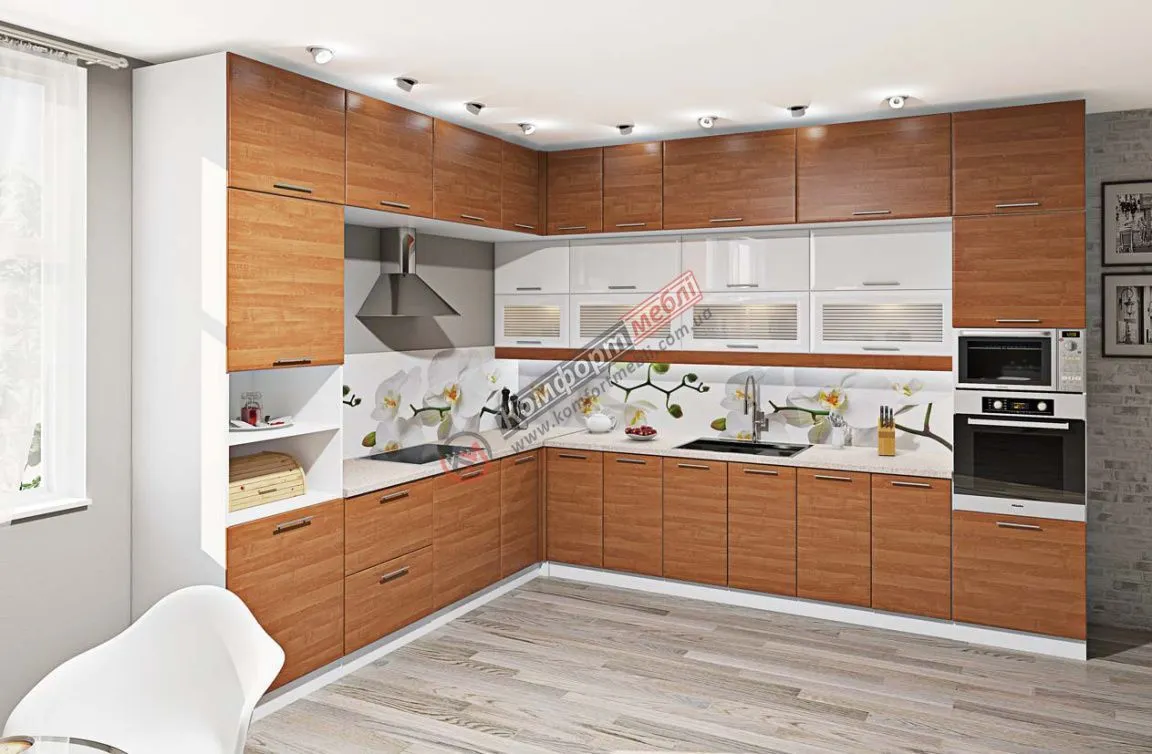 Модульна кухня Хай-тек 3.6 х 2.8 м кутова Білого кольору, Вільха