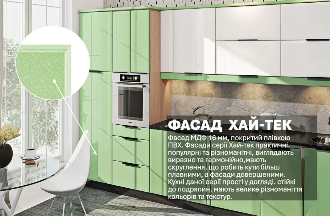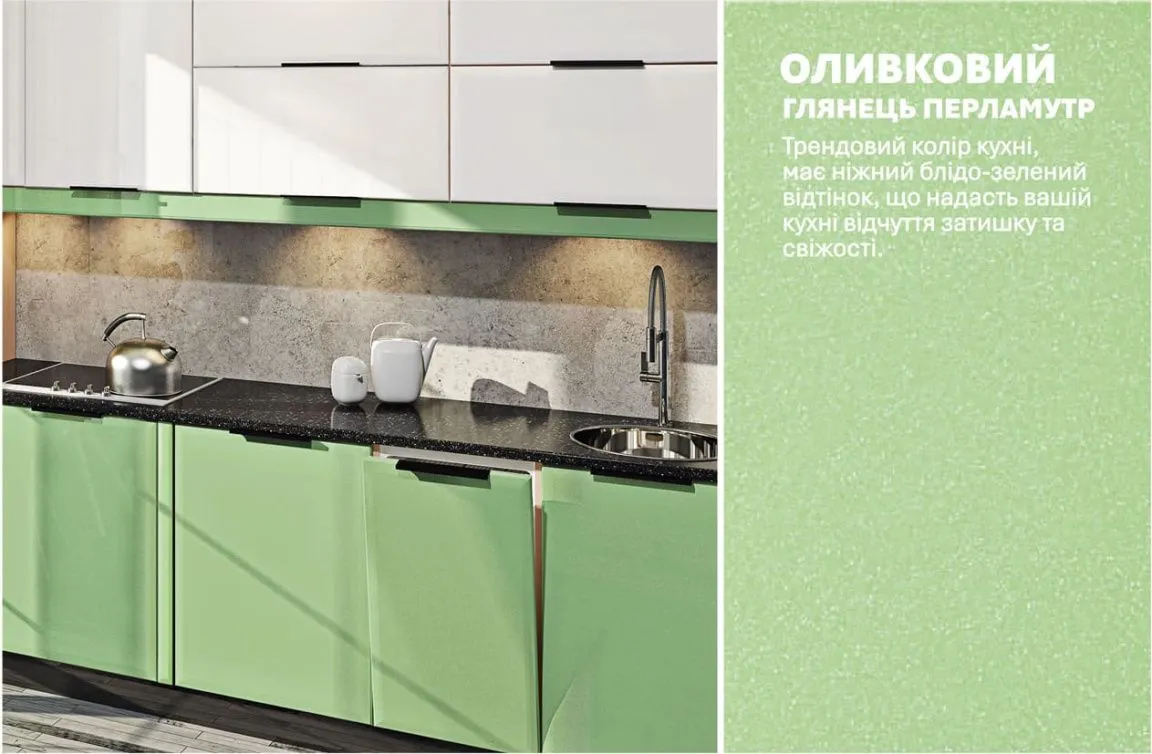 Модульна кухня Хай-тек 3,6м Білого кольору, Оливка