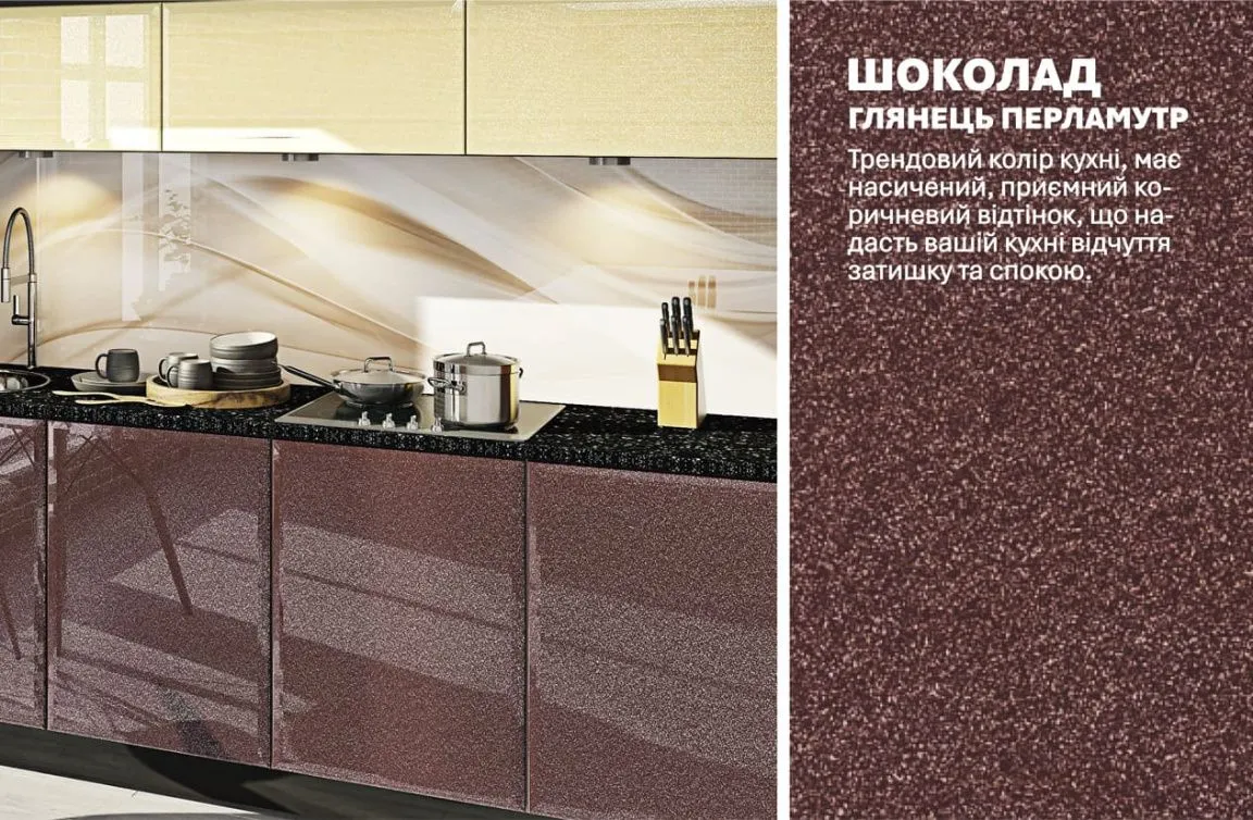Модульна кухня Хай-тек 3,6м Ваніль, Шоколад