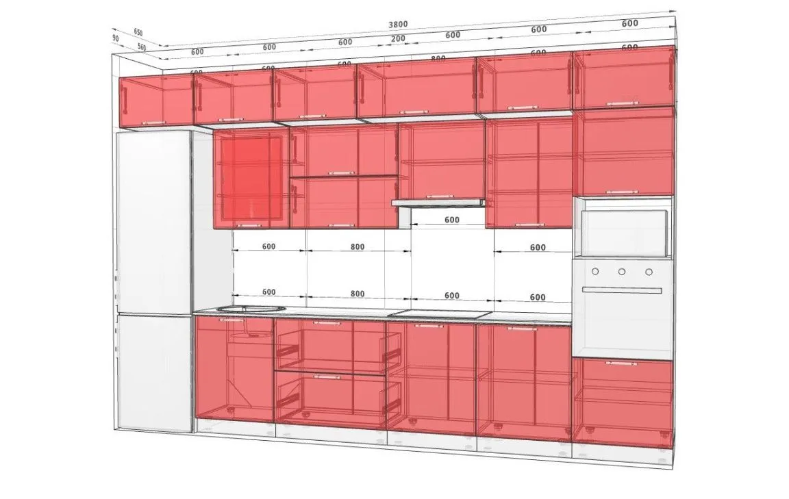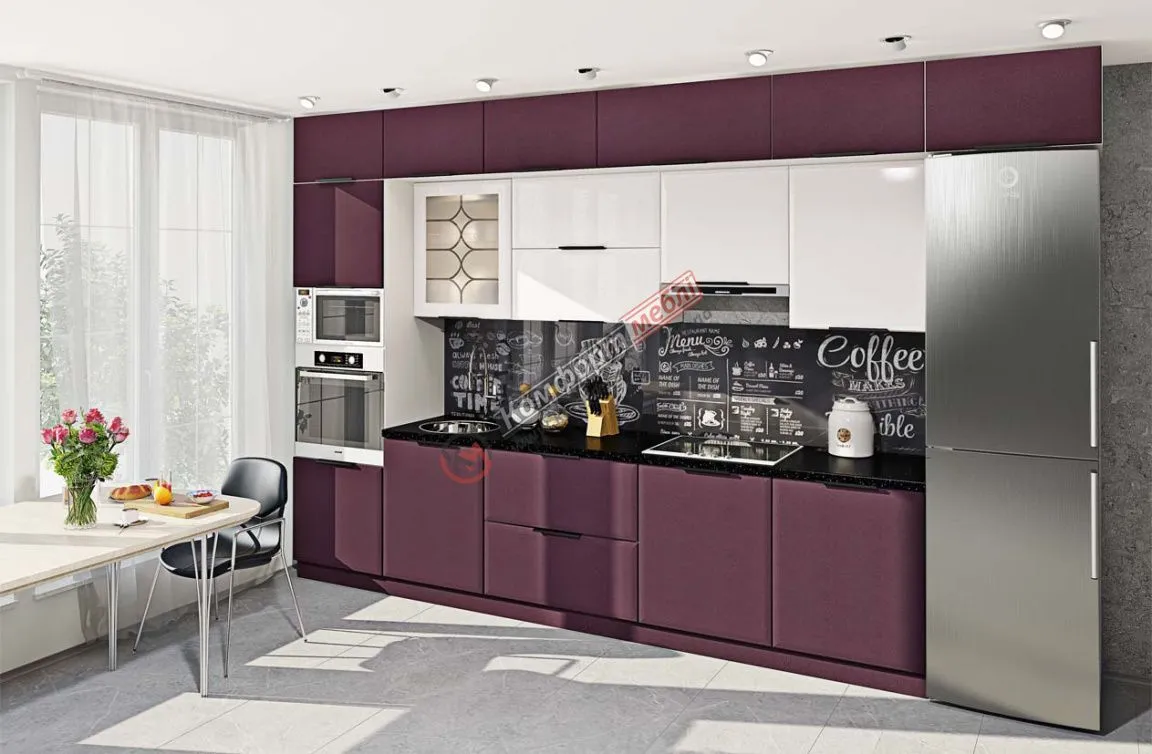 Модульна кухня Хай-тек 3600мм Білий, Бордо