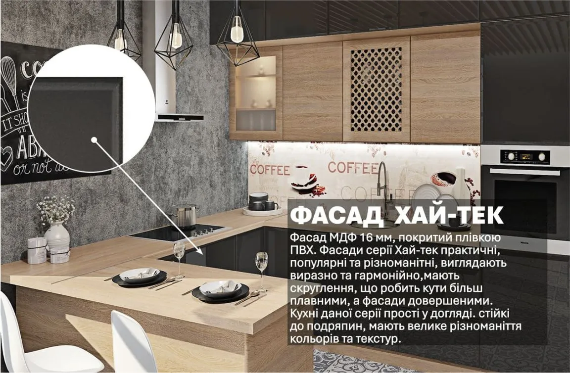 Модульна кухня Хай-тек 3х2.6м П-подібна Асфальт, Дуб натуральний