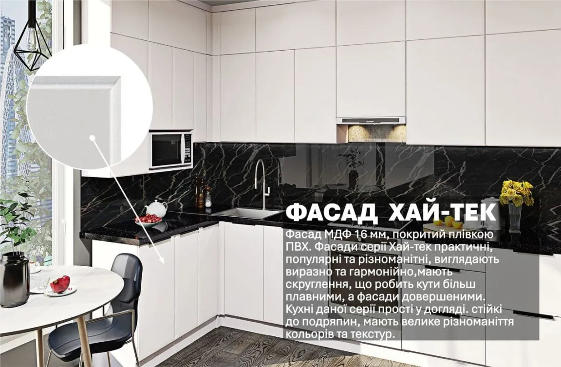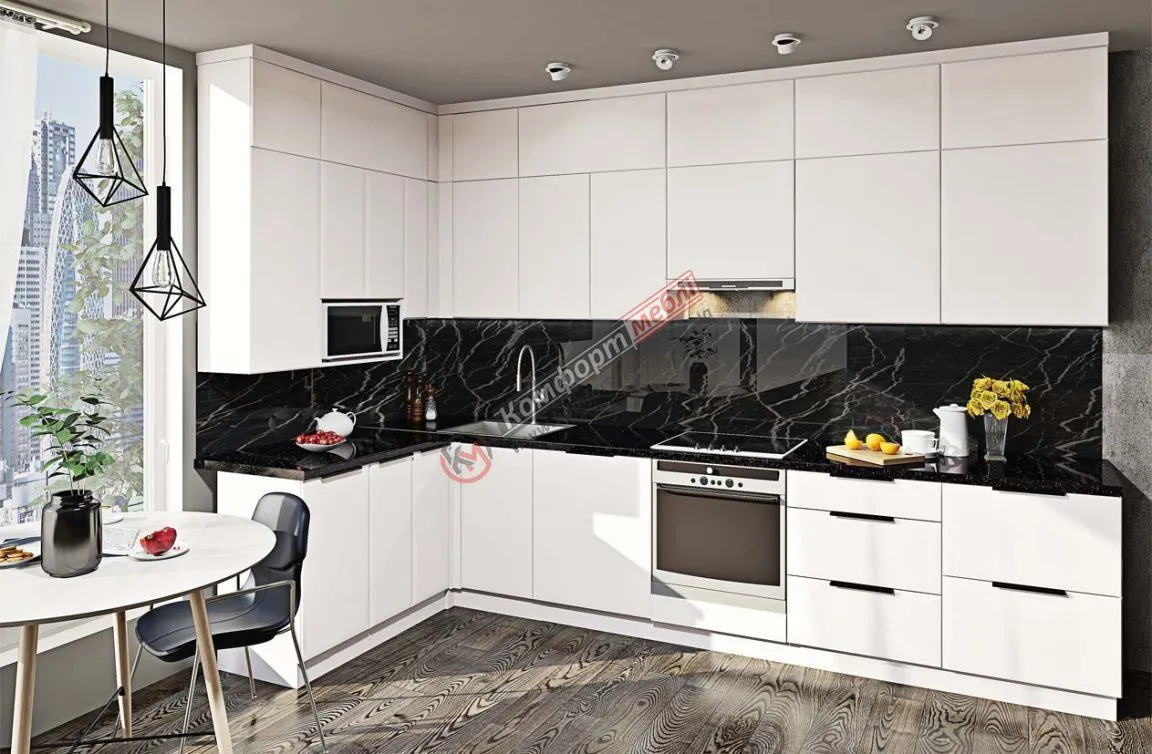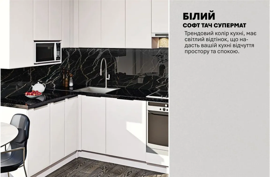 Модульна кухня Хай-тек софт-тач супермат 3,3х1.6 м кутова Білого кольору