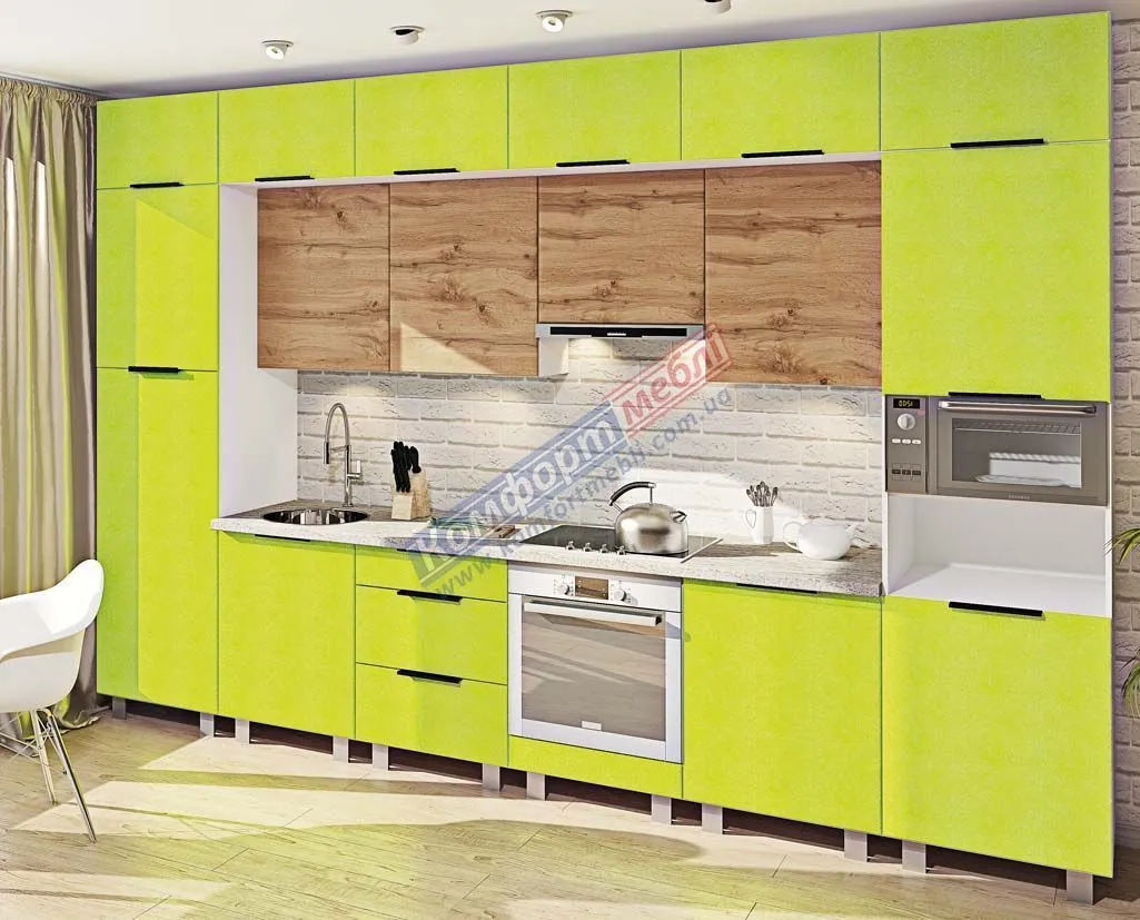 Модульна кухня Хай-тек софт-тач супермат 3,6 метра Дуб золотий, Лайм