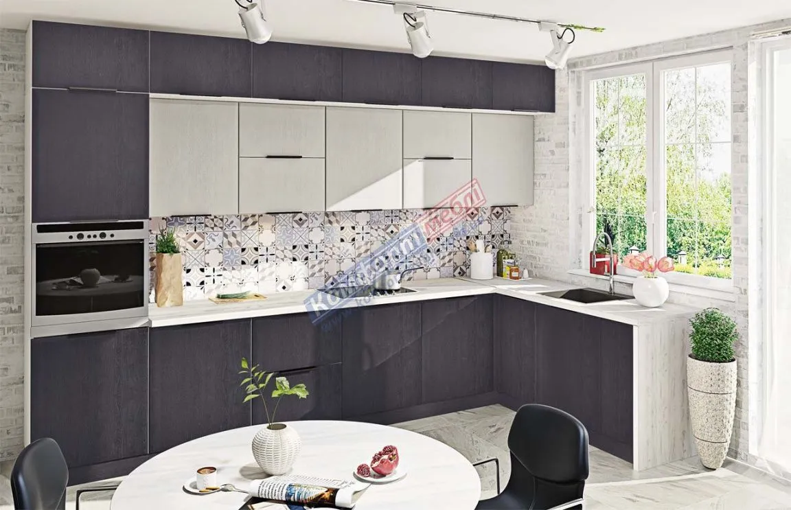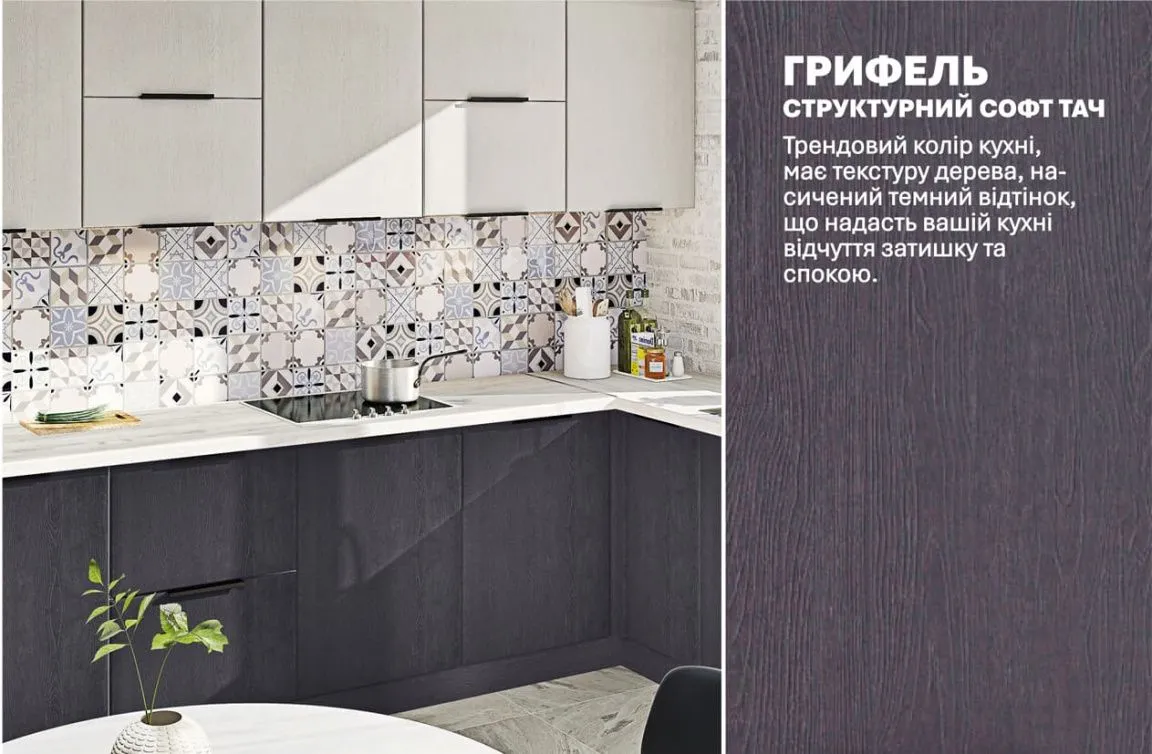 Модульна кухня Хай-тек софт-тач супермат 3.6х1.95м кутова Грифель, Пломбір