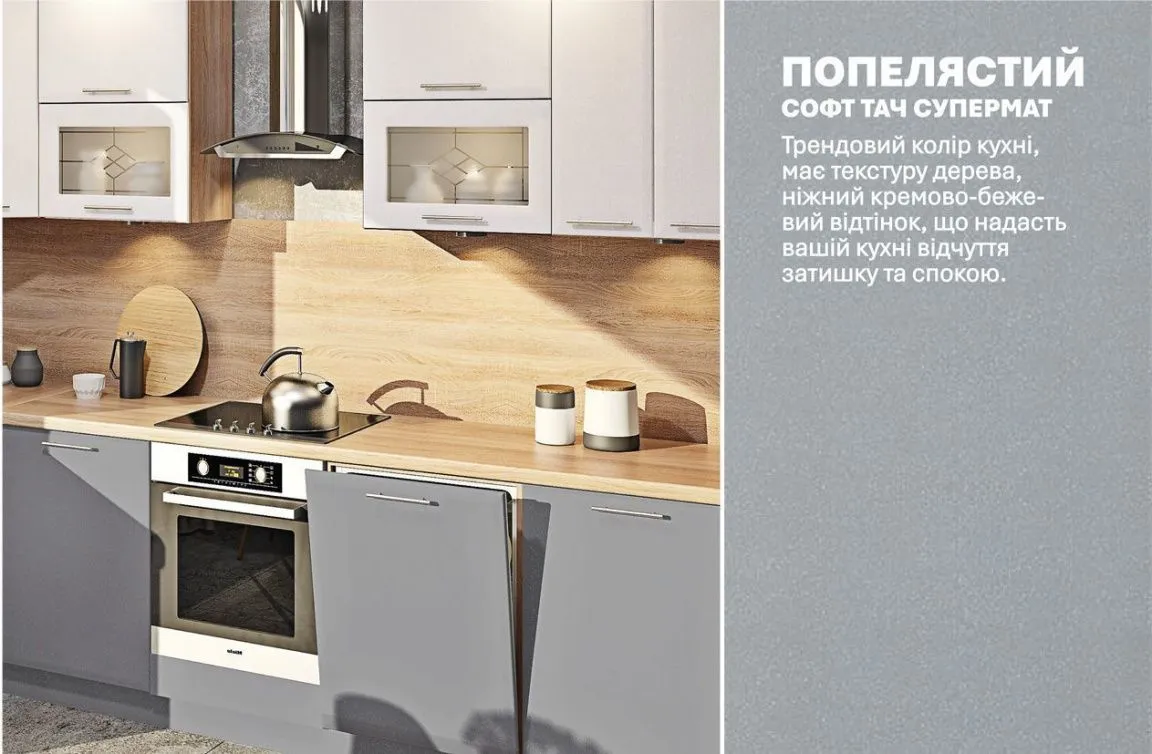 Модульна кухня Хай-тек софт-тач супермат 3 х 1,7м кутова Білий, Попільний