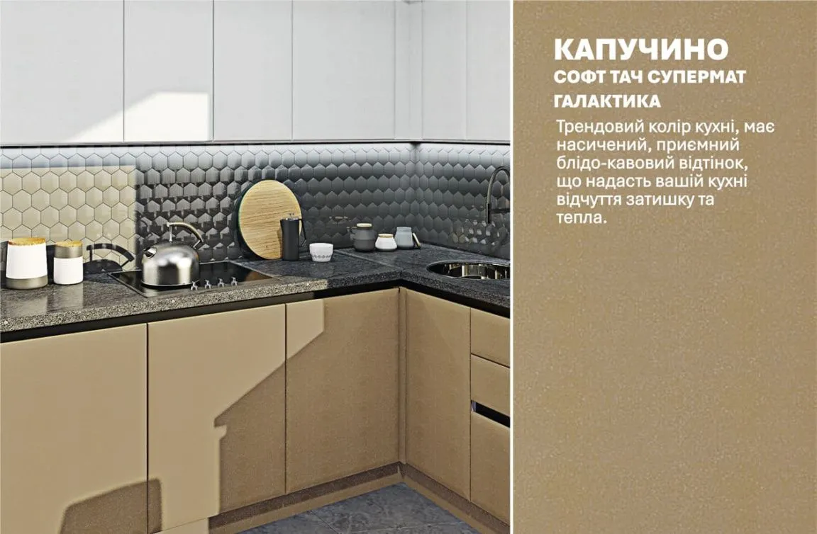 Модульна кухня Хай-тек софт-тач супермат 3 х 1.9м кутова Білий, Капучіно