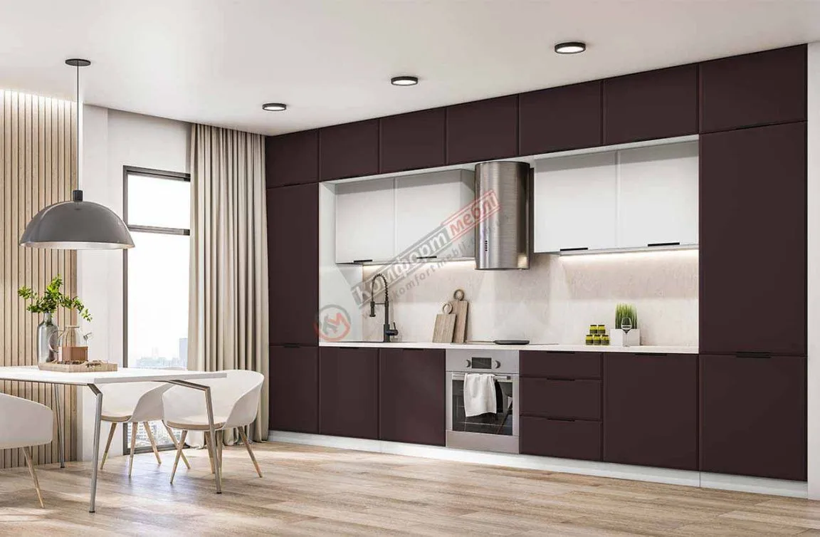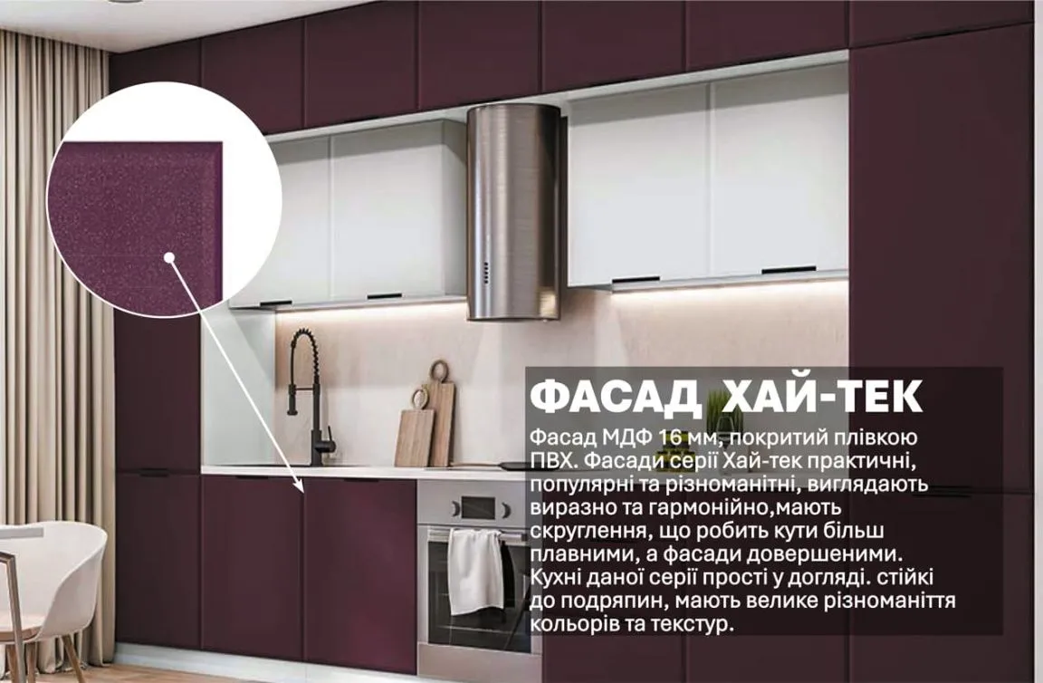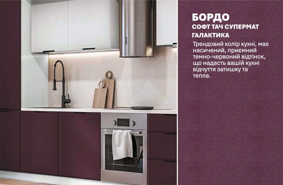 Модульна кухня Хай-тек софт-тач супермат 4.2 метра Білий, Бордо