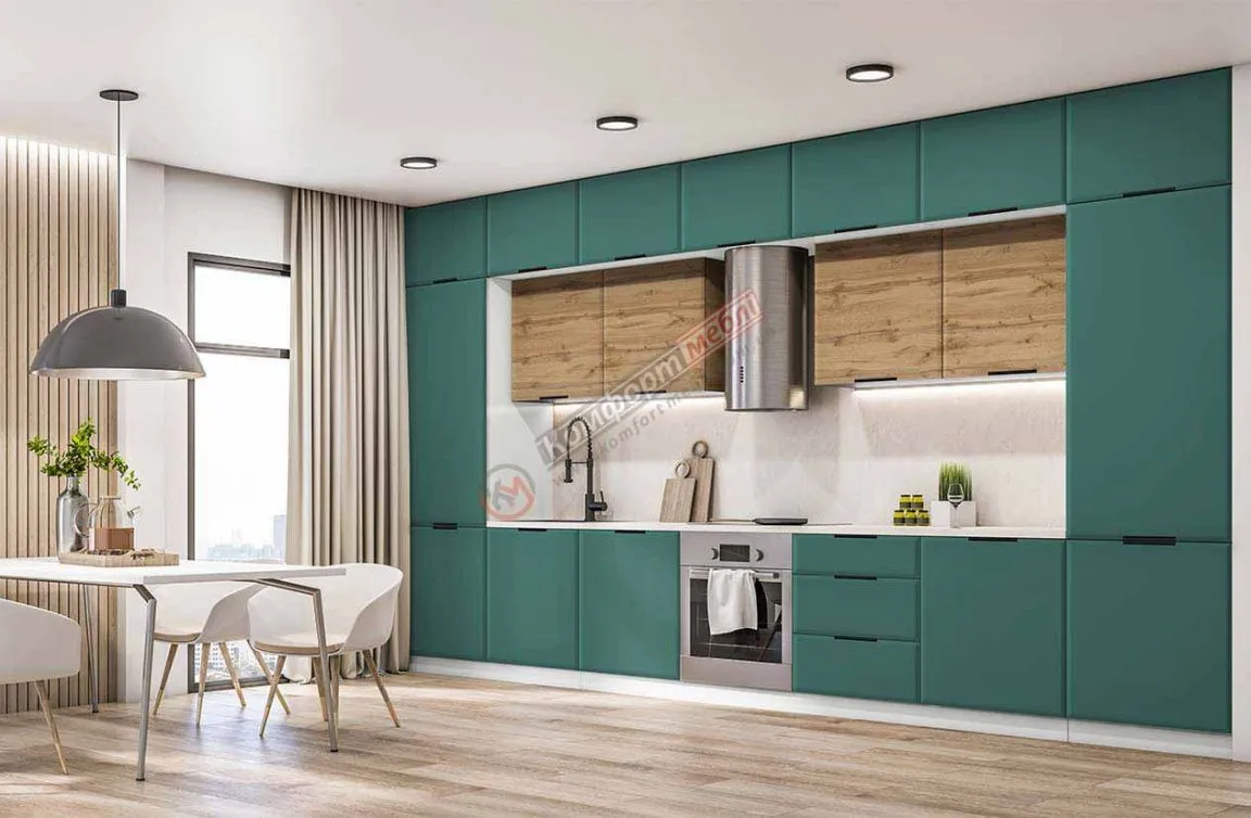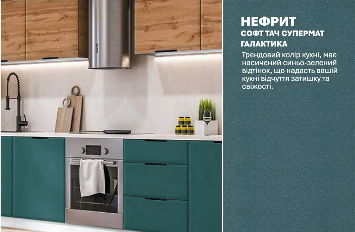 Модульна кухня Хай-тек софт-тач супермат 4,2 метра Дуб золотий, Нефрит