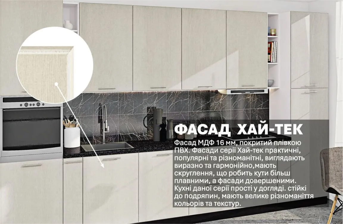 Модульна кухня Хай-тек софт-тач супермат 4 метра Пломбір