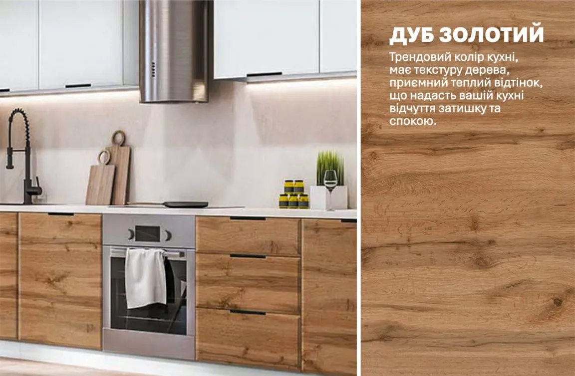 Модульна кухня Хай-тек софт-тач супермат 4200мм Білий, Дуб золотий