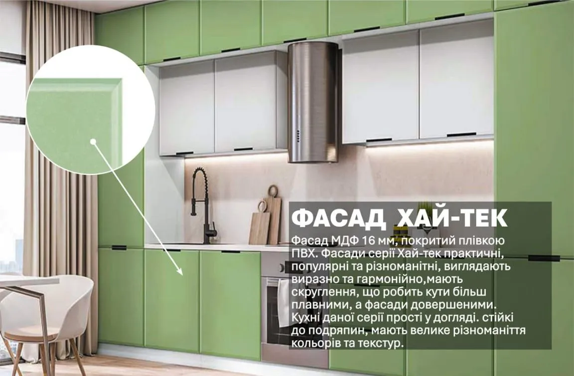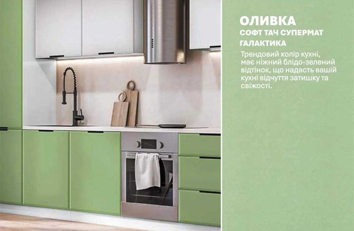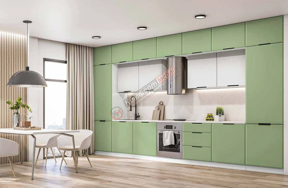 Модульна кухня Хай-тек софт-тач супермат 420см Білий, Оливка