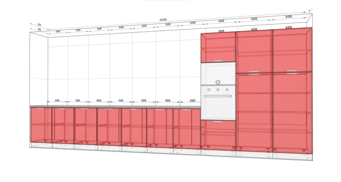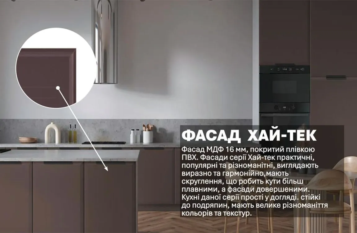 Модульна кухня Хай-тек софт-тач супермат 5.3 метра з кухонним островом Смокі