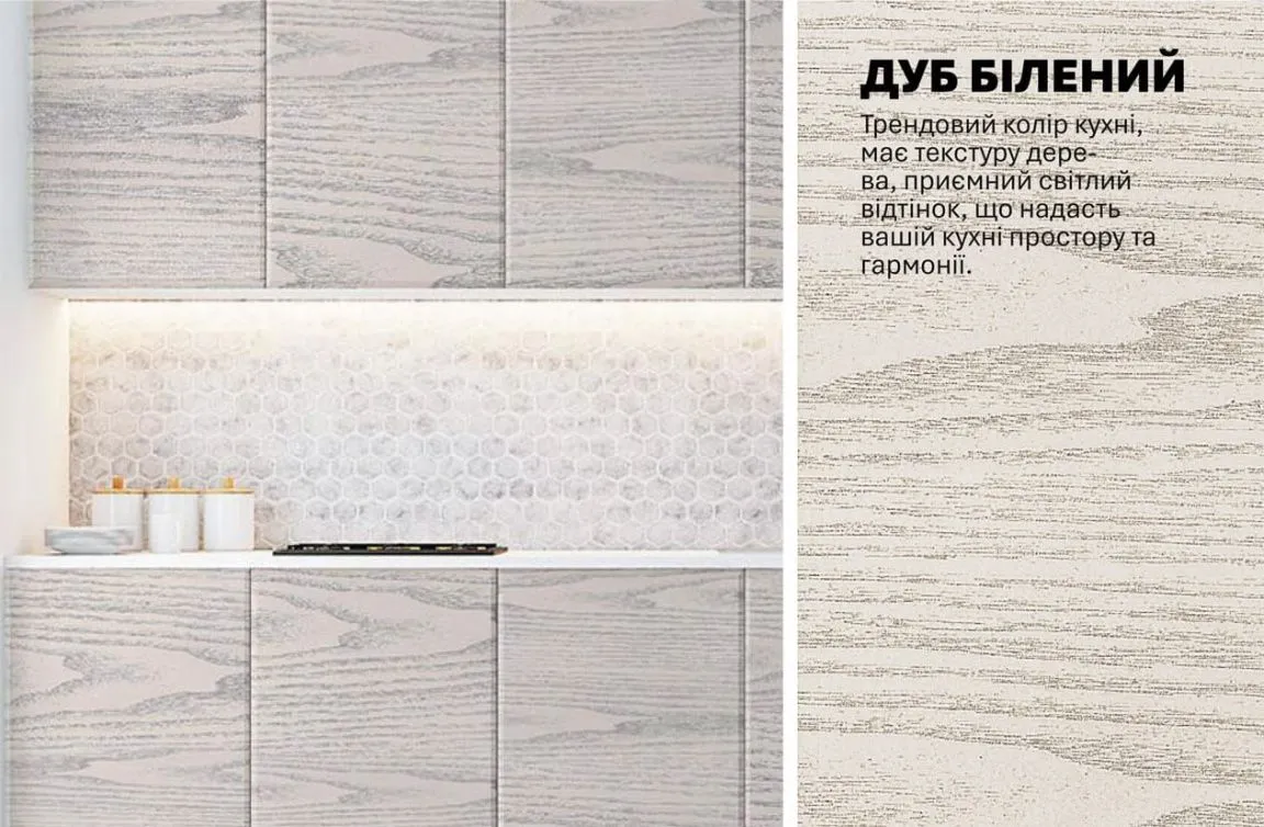 Модульна кухня Хай-тек текстурований 2 м дуб крафт білий (білений)