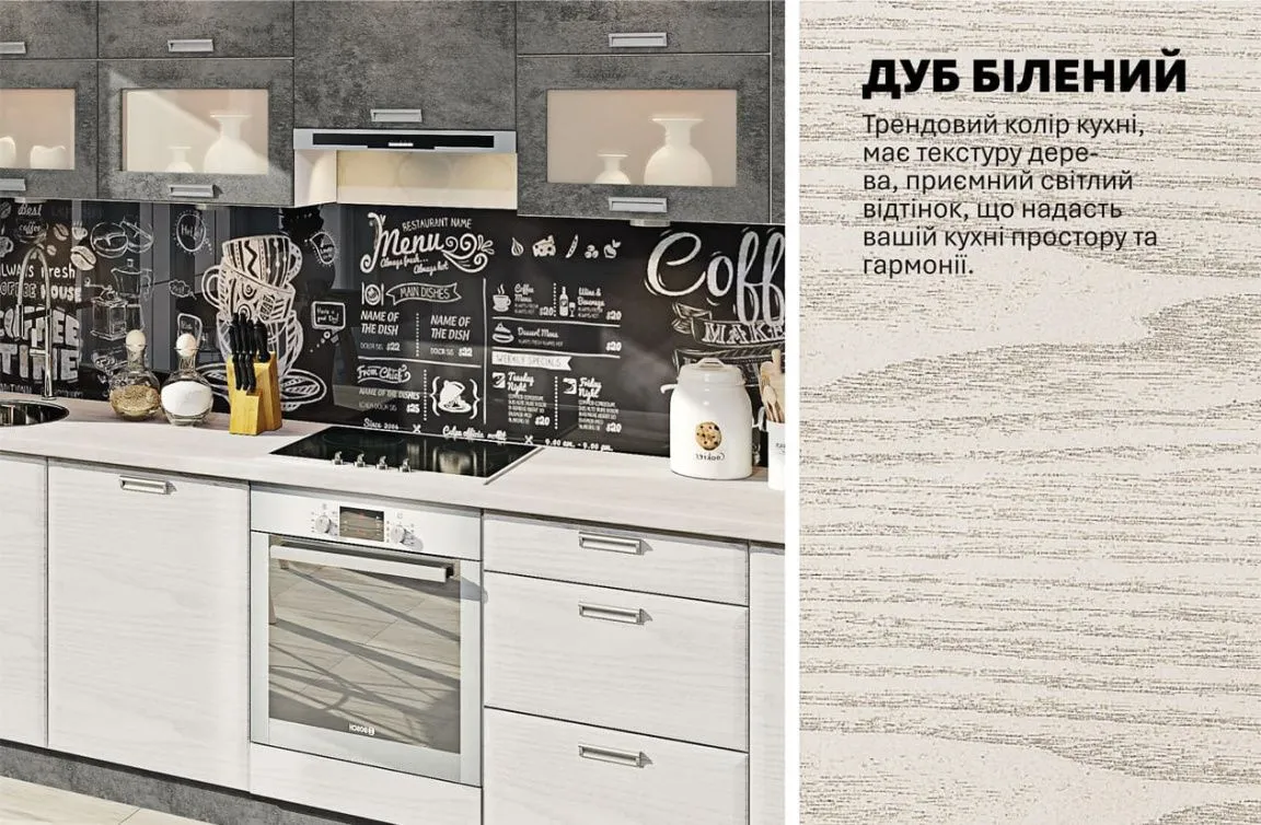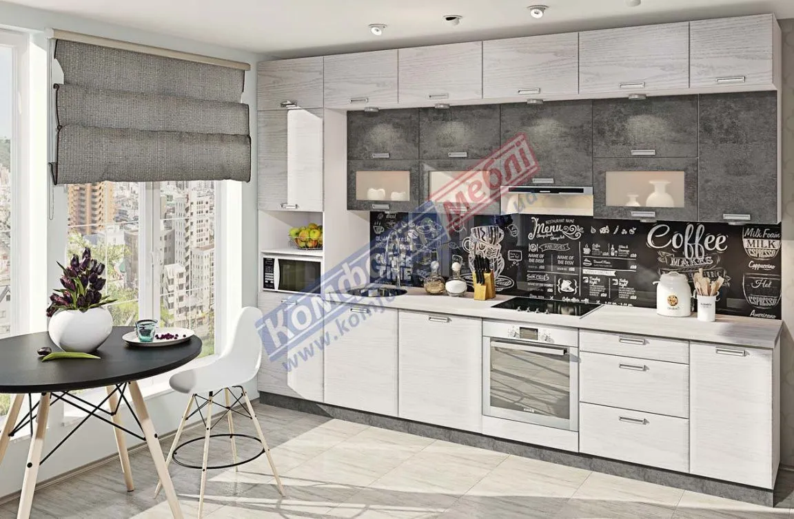 Модульна кухня Хай-тек текстурований 3.4м Дуб білений, Мармур бетон сірий