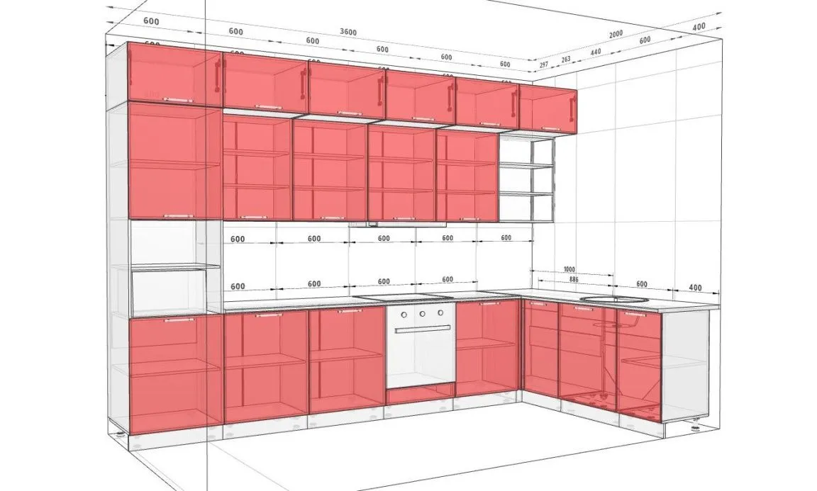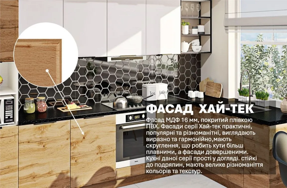 Модульна кухня Хай-тек текстурований 3,6х2 м кутова Білий, Дуб золотий