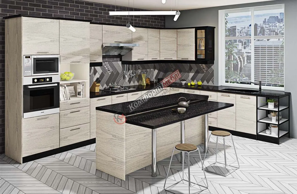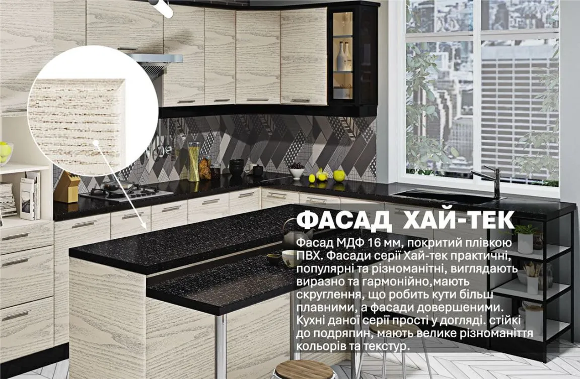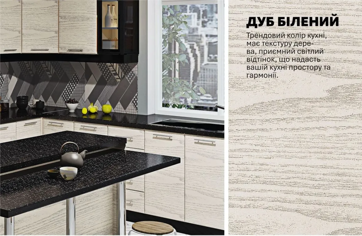 Модульна кухня Хай-тек текстурований 4.05х3м з кухонним островом дуб білений