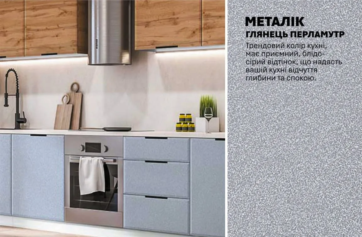 Модульна кухня Хай-тек текстурований 4200мм Дуб золотий, Металік