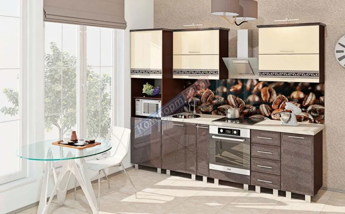 Модульна кухня Хай-тек з кольоровим друком 2.8м Крем, Шоколад