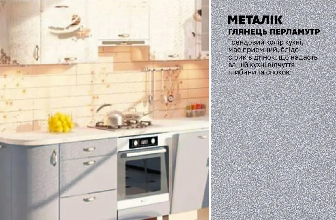 Модульна кухня Хай-тек з кольоровим друком 3,1х1,7м кутова Металік