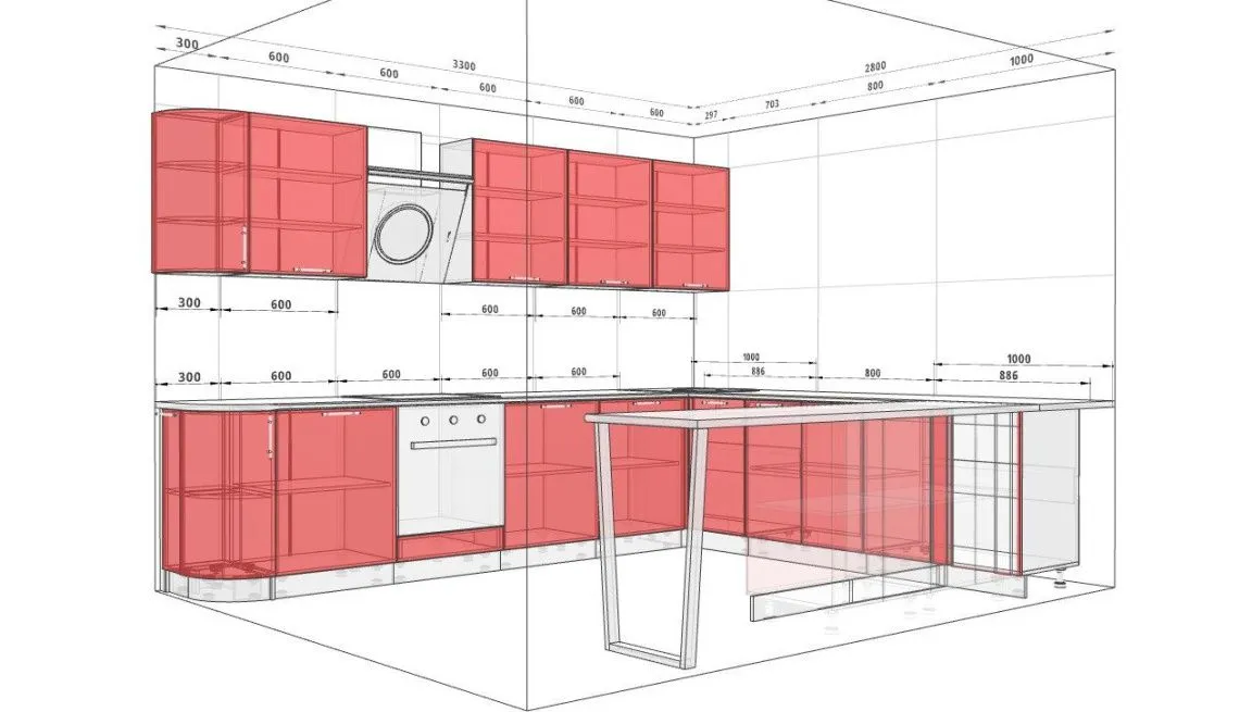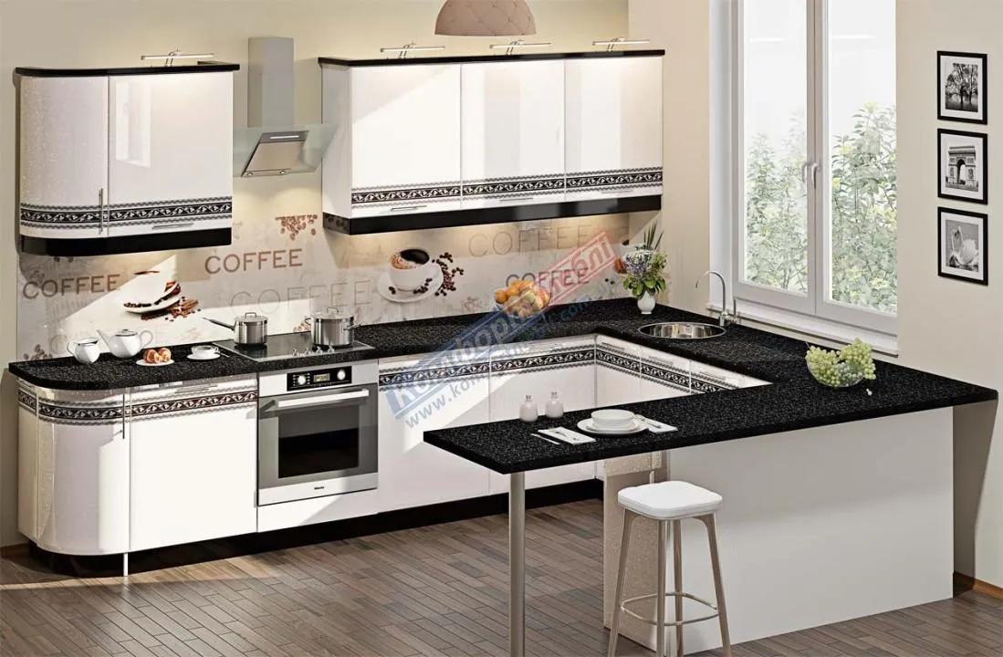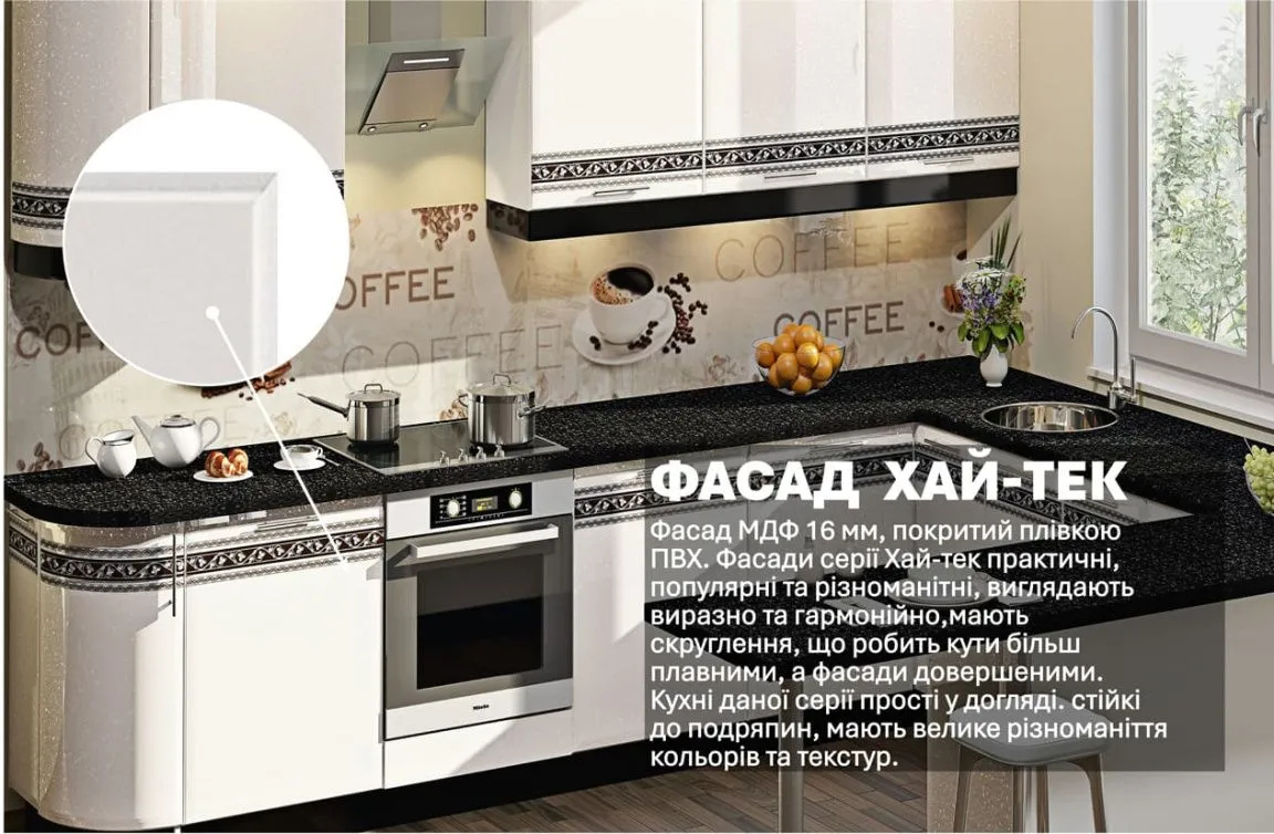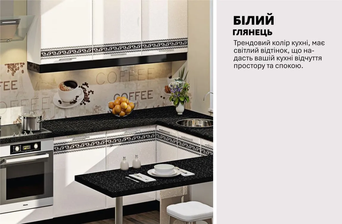 Модульна кухня Хай-тек з кольоровим друком 3.3х2.8м П-подібна Білий