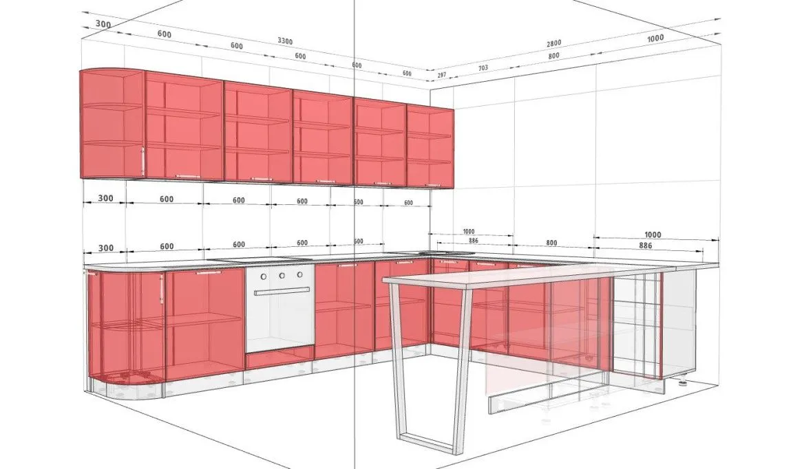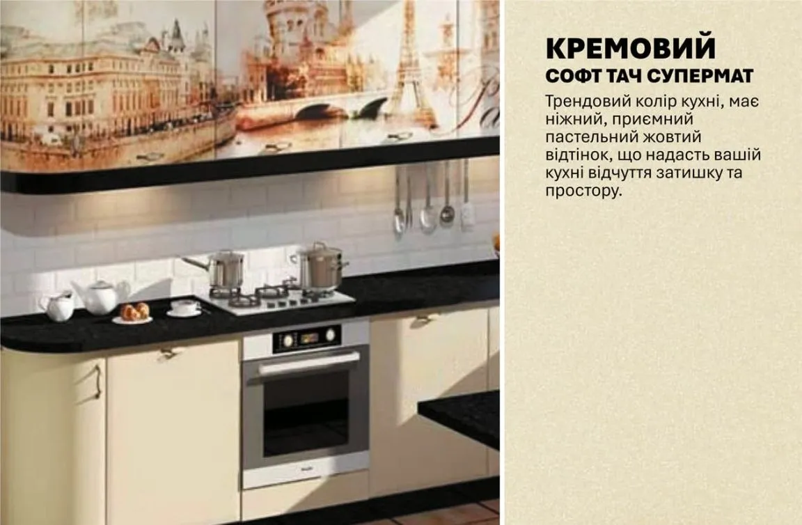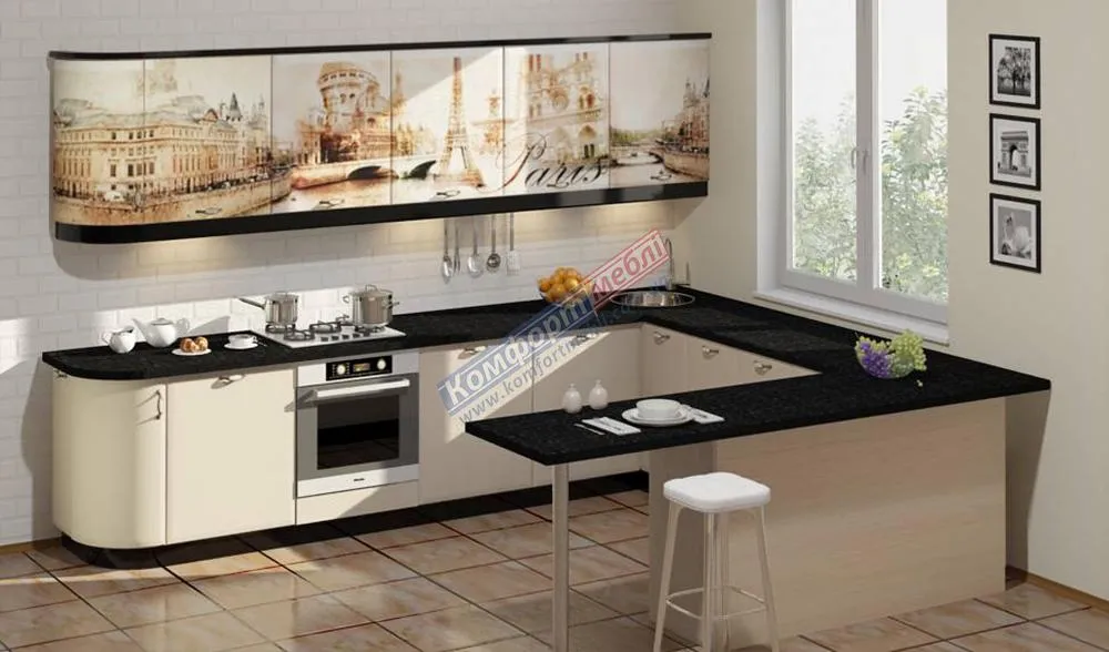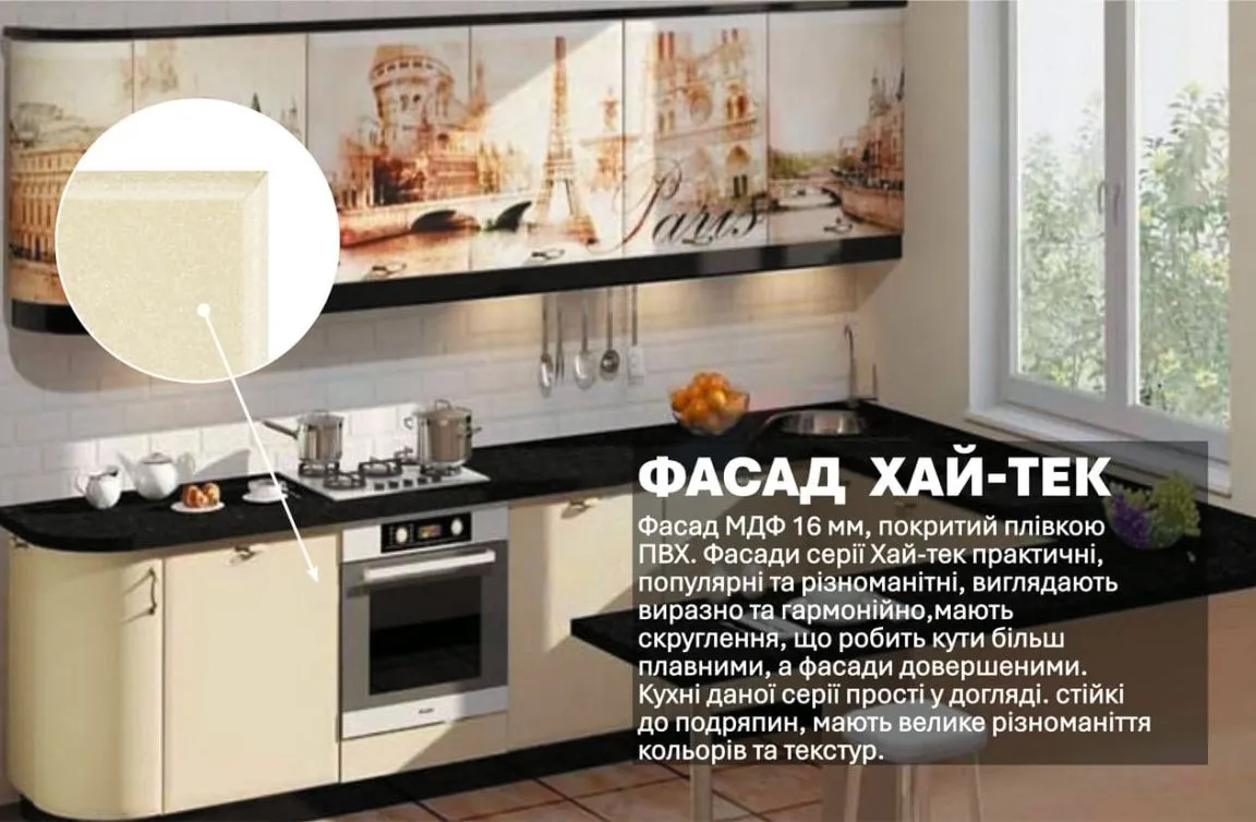 Модульна кухня Хай-тек з кольоровим друком 3,3х2,8м П-подібна Крем