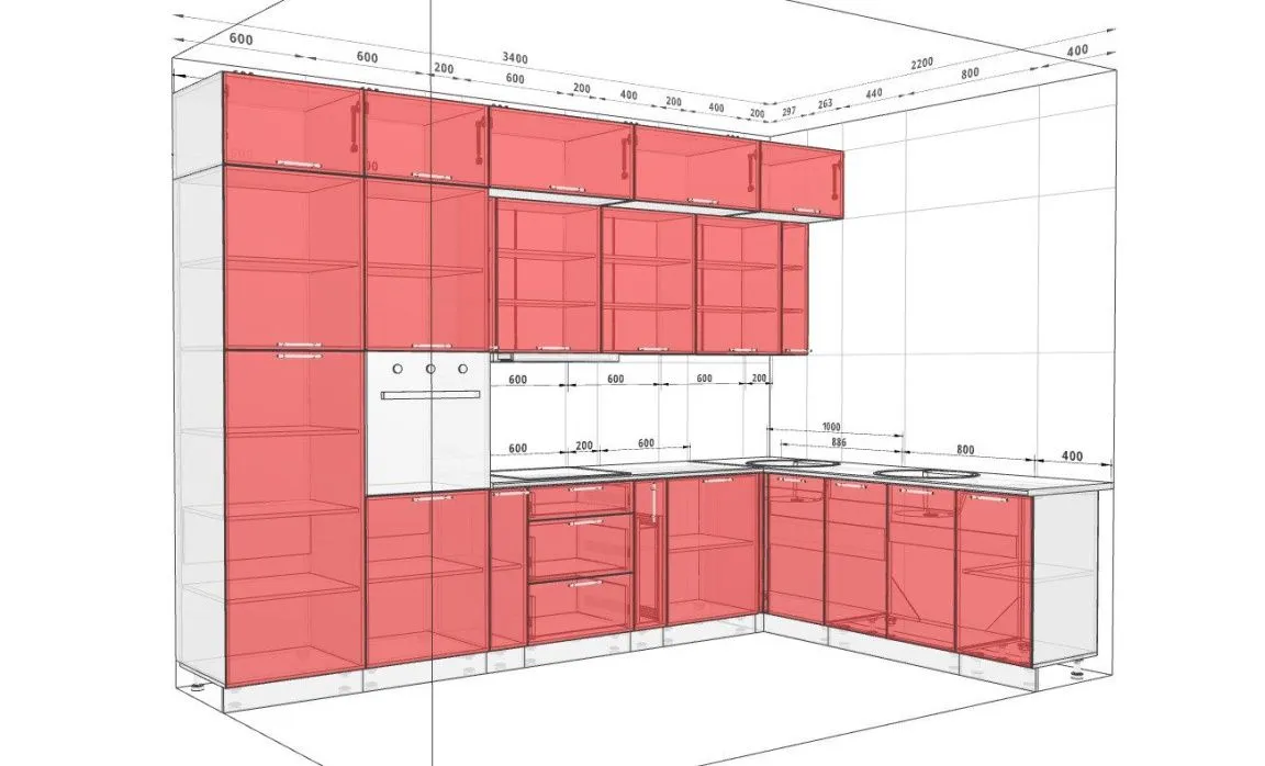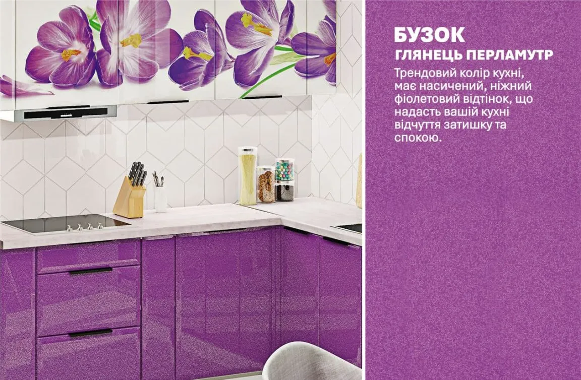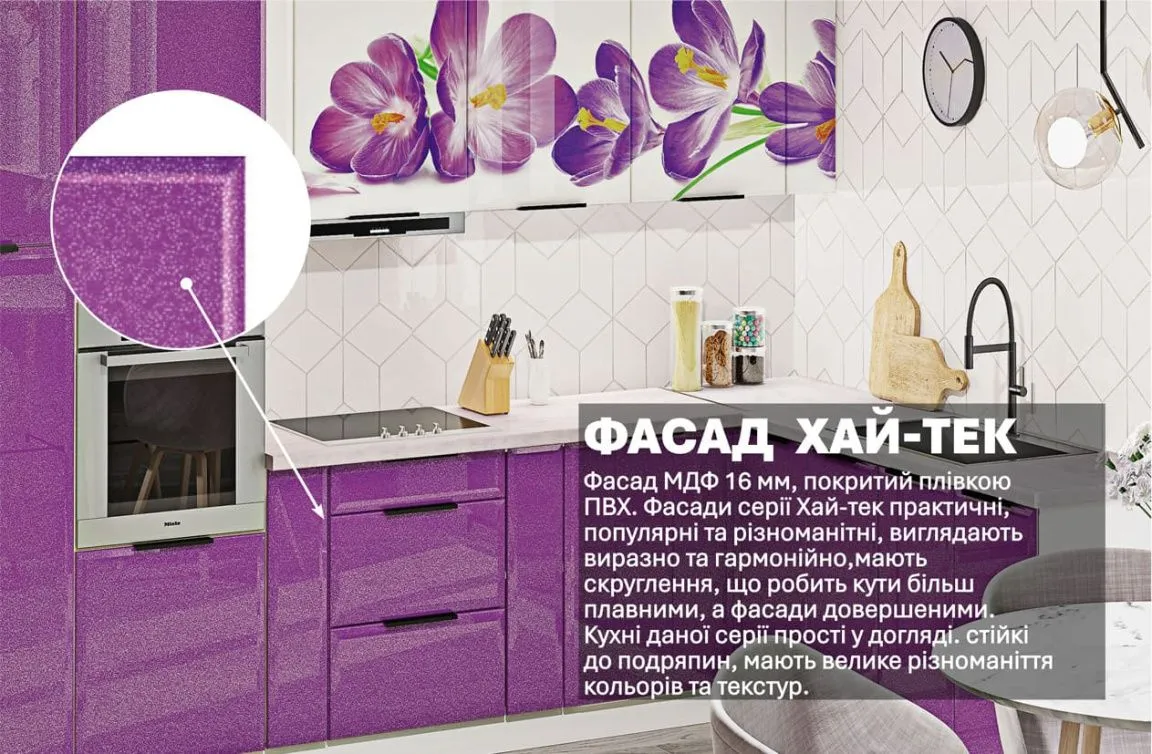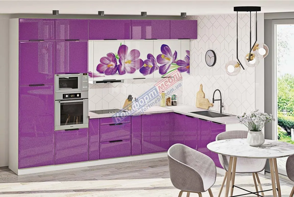 Модульна кухня Хай-тек з кольоровим друком 3.4х2.2м Білий, Бузок