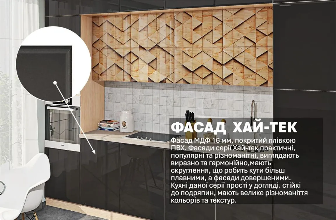 Модульна кухня Хай-тек з кольоровим друком 3,6м Асфальт
