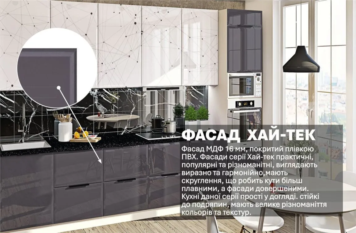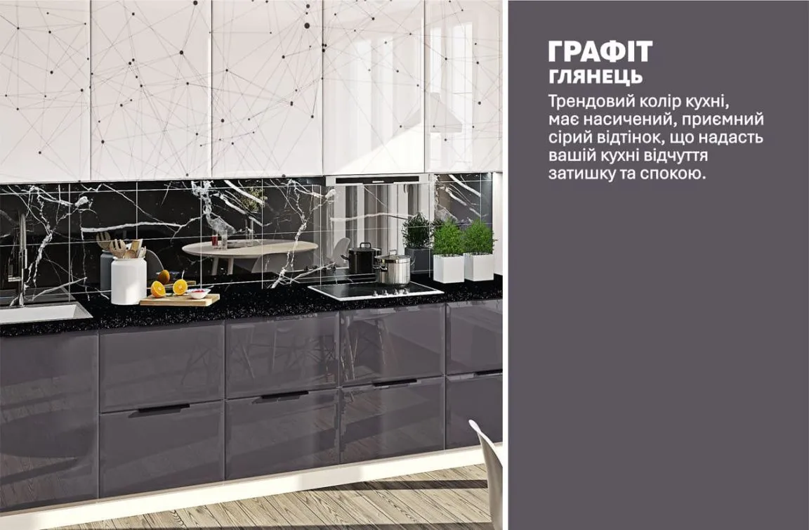 Модульна кухня Хай-тек з кольоровим друком 3.6м Графіт