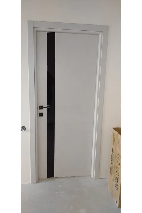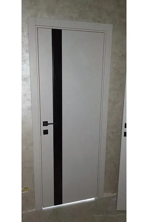 Двери Plato Line PTL-03 белый матовый (декор с алюминия черного цвета) Darumi