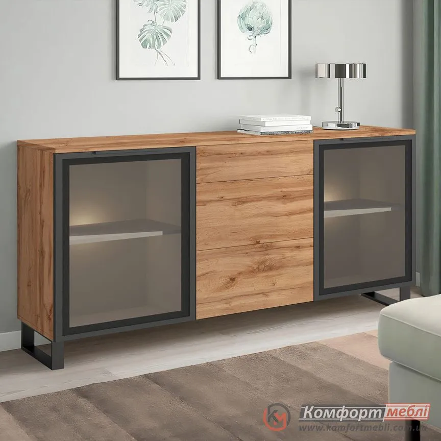 Офісна тумба Комфорт Flex 1,5 м з ДСП фасадами Дуб золотий в зал