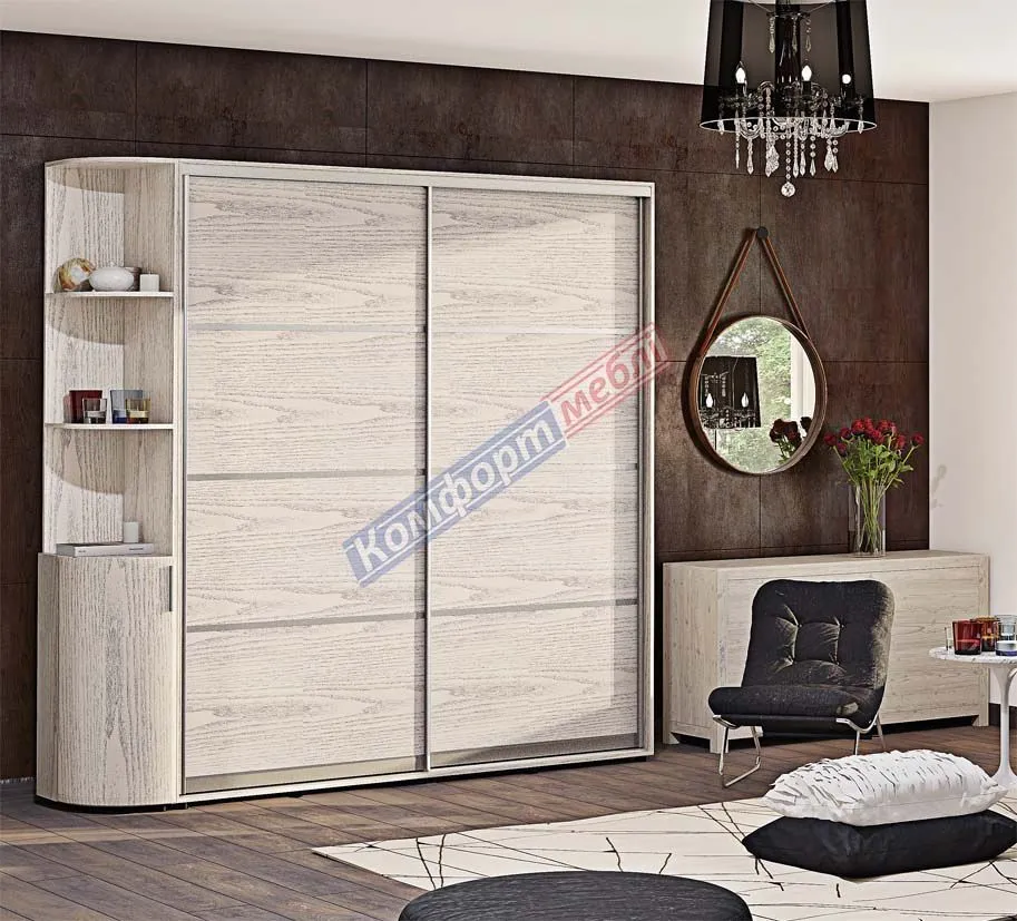 Шафа купе 1.0 метра Комфорт "З 4-х частин" 2 дверна білений дуб