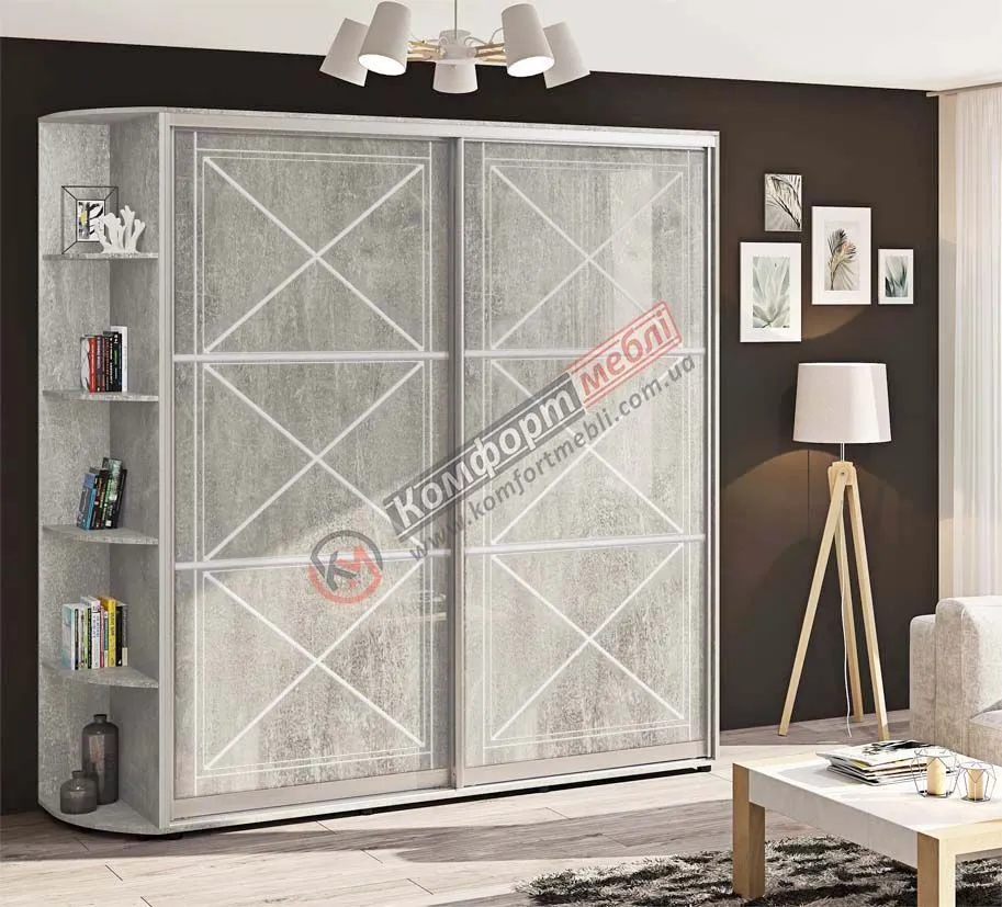 Шафа купе 1.2 метра Комфорт "Прованс" глянець 2 дверна Бетон світлий