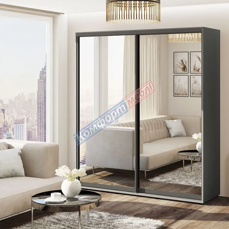 Шафа купе 1.4 м Комфорт "Дзеркало" 2 дверна графіт