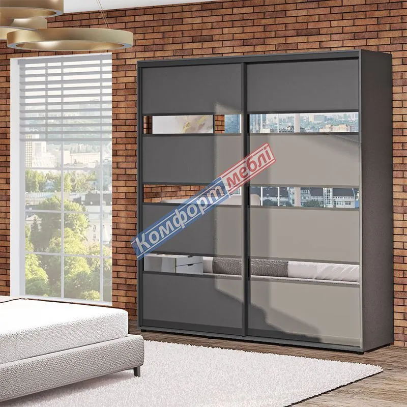 Шафа купе 1.7 м Комфорт "Модель 4" дводверна темно-сіра