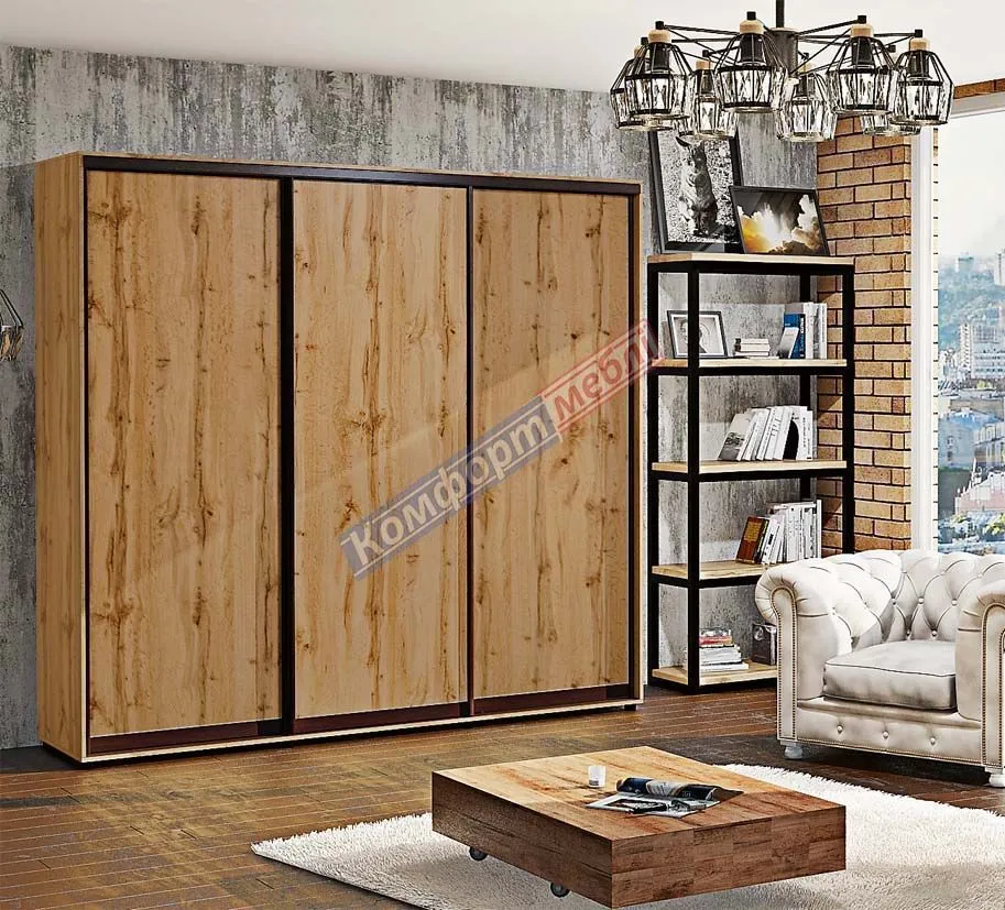 Шафа купе 1.8 метра Комфорт "ДСП" тридверна колір дуб золотий