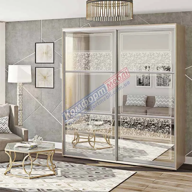 Шафа купе 1.9 м Комфорт "Дзеркало" дводверна колір дуб сонома