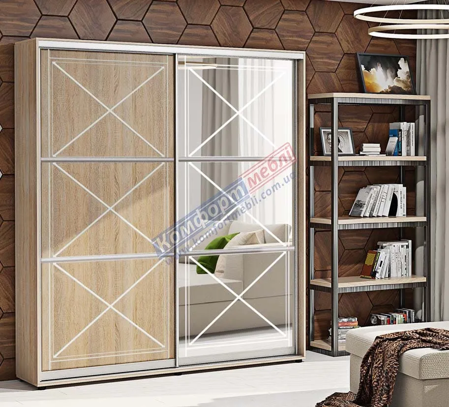 Шафа купе 1.9 м Комфорт "Прованс" глянець 2 дверна дуб натуральний