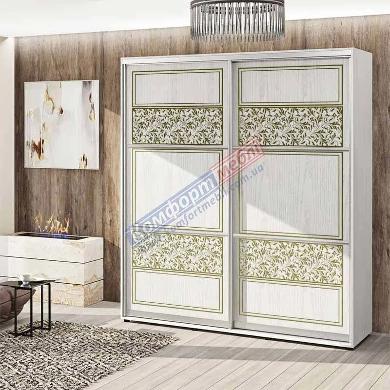Шафа купе 1.9 м Комфорт "Валенсія" глянець 2 дверна білений дуб