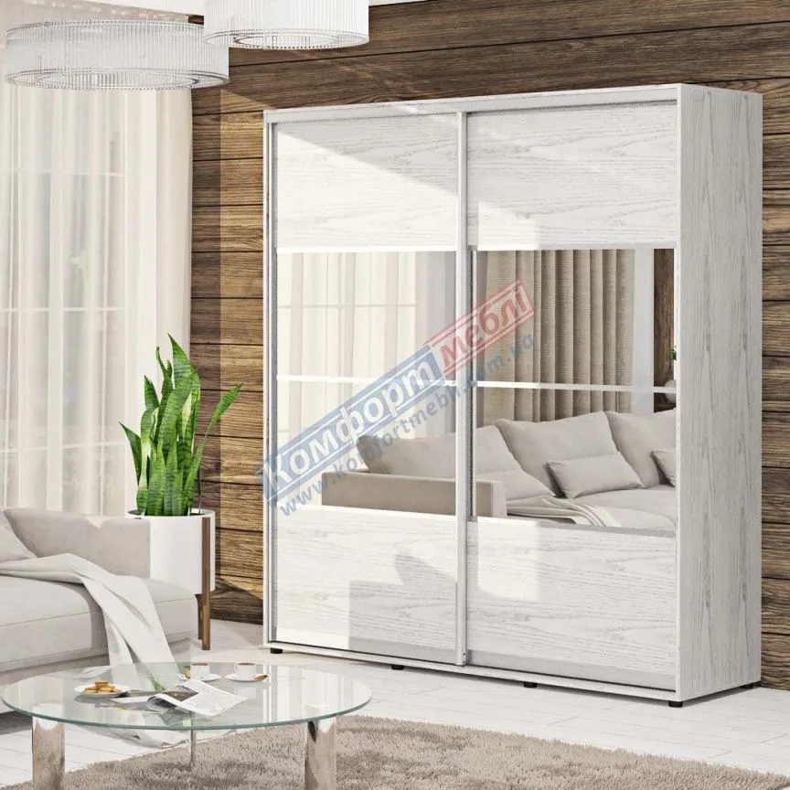Шафа-купе 1200 мм Комфорт "Модель 8" двохдверна дуб білений
