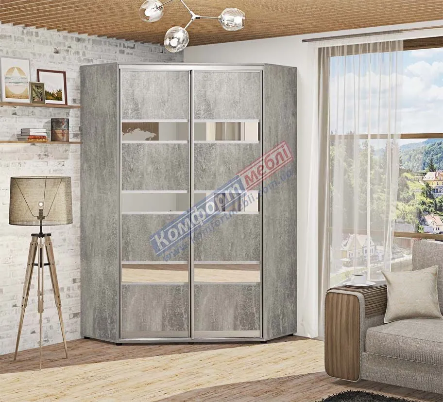 Шафа купе 130 см Комфорт "Модель 4" кутова дводверна бетон