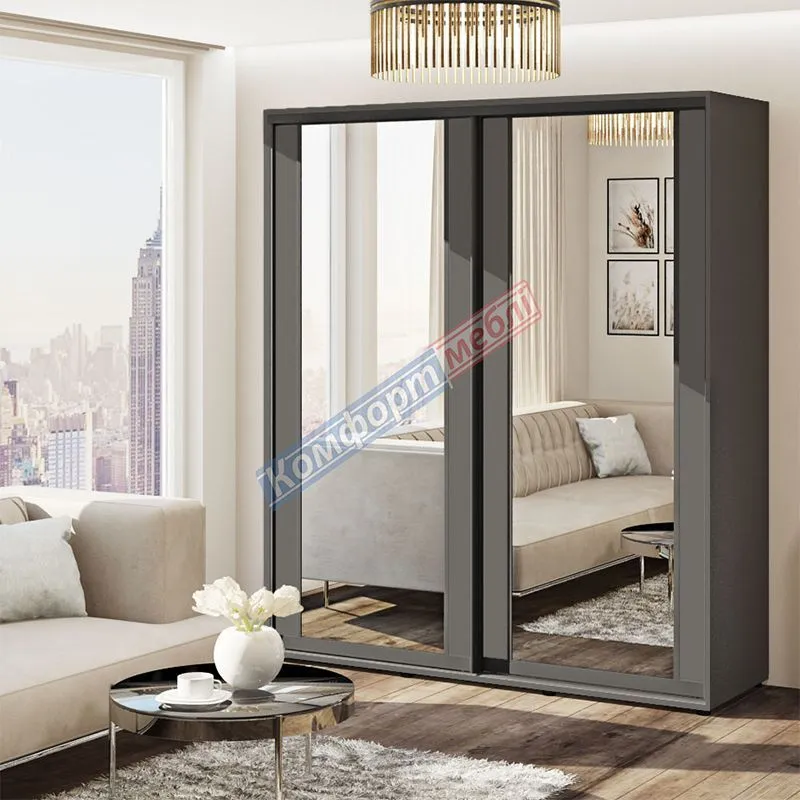 Шафа-купе 1400 мм Комфорт "Модель 7" двохдверна Грифель